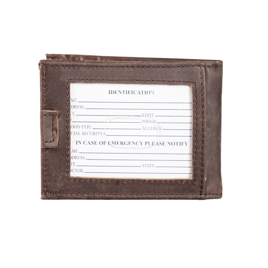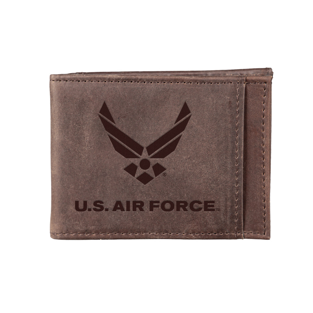 This US Air Force Brown Front Pocket Wallet is crafted from 100% genuine leather and features RFID blocking technology to protect your information. Designed with a clear ID window and ample storage, it's both stylish and functional.