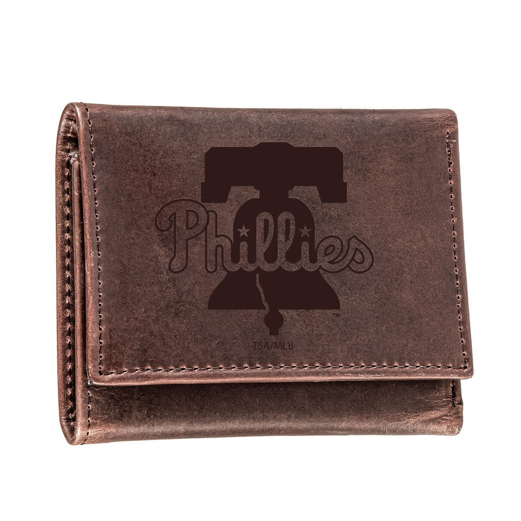 Philadelphia Phillies Tri-Fold Wallet Brown 100% Genuine Leather