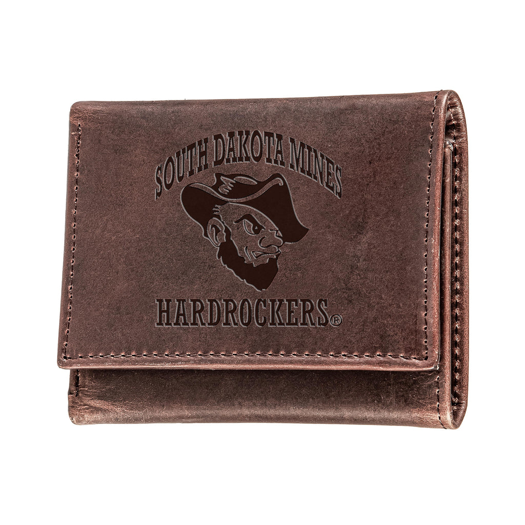 Show off your school spirit with this South Dakota School of Mines & Technology tri-fold wallet, crafted from 100% genuine leather for durability and style.