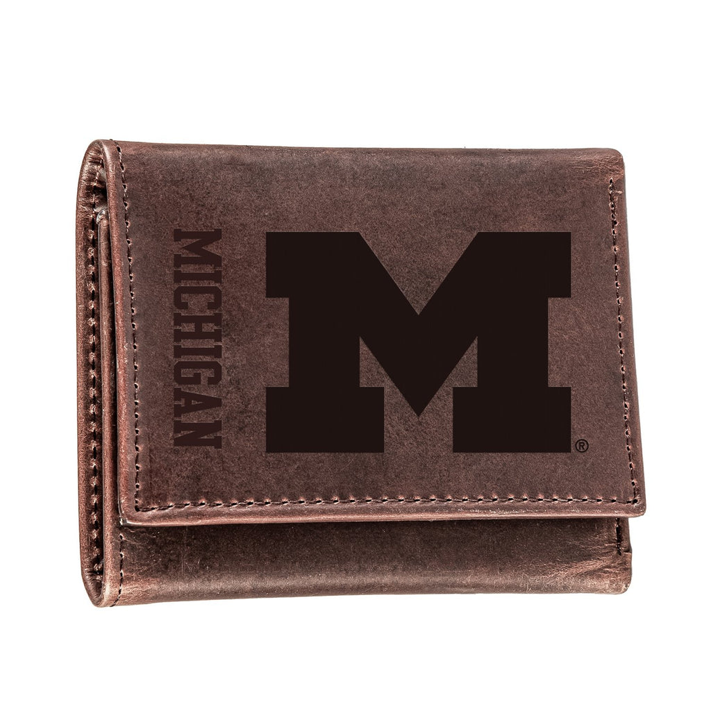 Show your school spirit with this University of Michigan tri-fold wallet, crafted from 100% genuine leather for durability and style.
