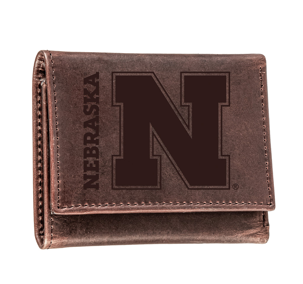 This University of Nebraska tri-fold wallet is crafted from 100% genuine leather and features the iconic Nebraska logo, making it a stylish and functional accessory for any fan.