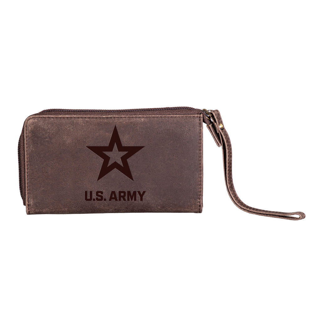 This US Army Brown Wristlet Wallet is crafted from 100% genuine leather, providing a durable and stylish accessory. Its compact design makes it perfect for daily use or as a thoughtful gift.
