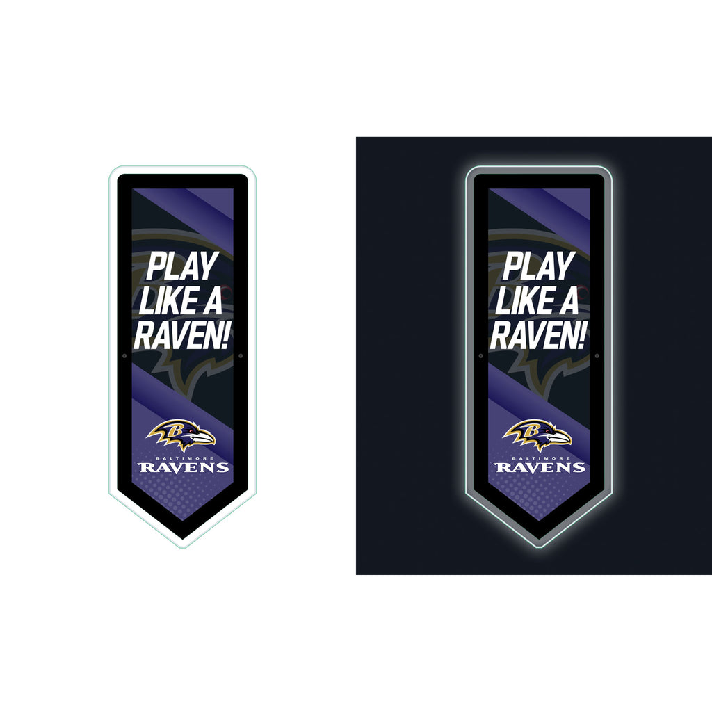 Illuminate your space with the Baltimore Ravens NFL Football Pennant Glazelite LED Decor, featuring vibrant team graphics and a sleek design.