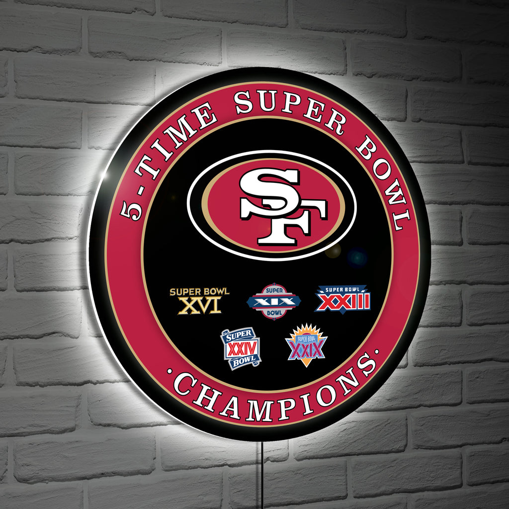 San Francisco 49ers Multi-Win Superbowl Champions Football Round LED Wall Decor
