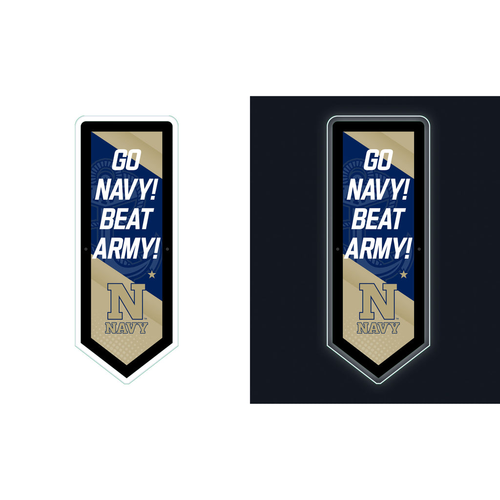 Illuminate your space with this US Naval Academy College Pennant Glazelite LED Decor, celebrating school spirit in style. The vibrant LED lighting adds a modern touch to any room.