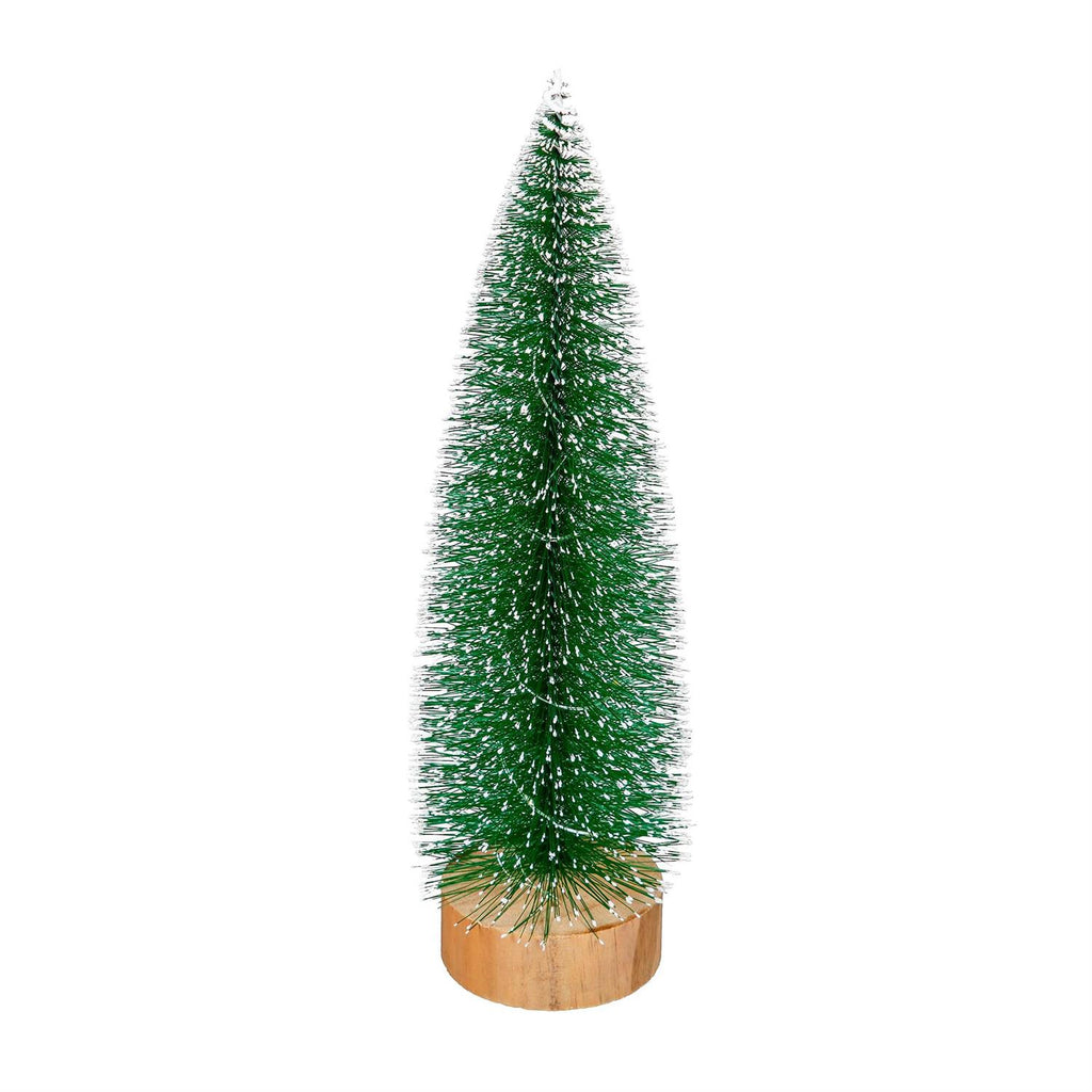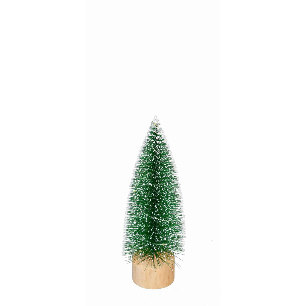 Enhance your holiday décor with this charming set of LED Bottlebrush Trees. Each tree stands at 10.8 inches tall, featuring a lush green color with white-tipped branches that mimic freshly fallen snow. Illuminated by warm LED lights, these trees create a cozy and festive ambiance for any table setting. Their compact size and wooden bases make them versatile for various spaces, from mantelpieces to dining tables. Perfect for adding a touch of winter wonderland to your home, these trees are a delightful seasonal addition.