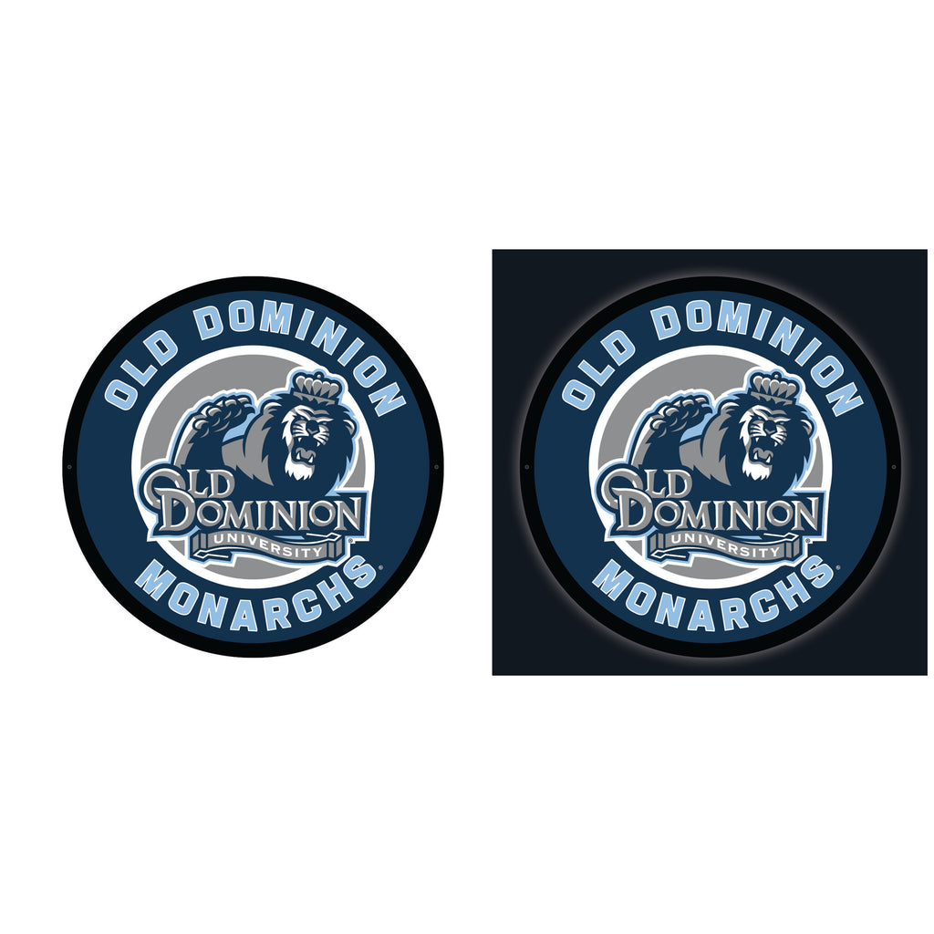 Illuminate your space with pride using the Old Dominion University College Large Round Edgelite LED Decor, featuring the iconic Monarchs logo.