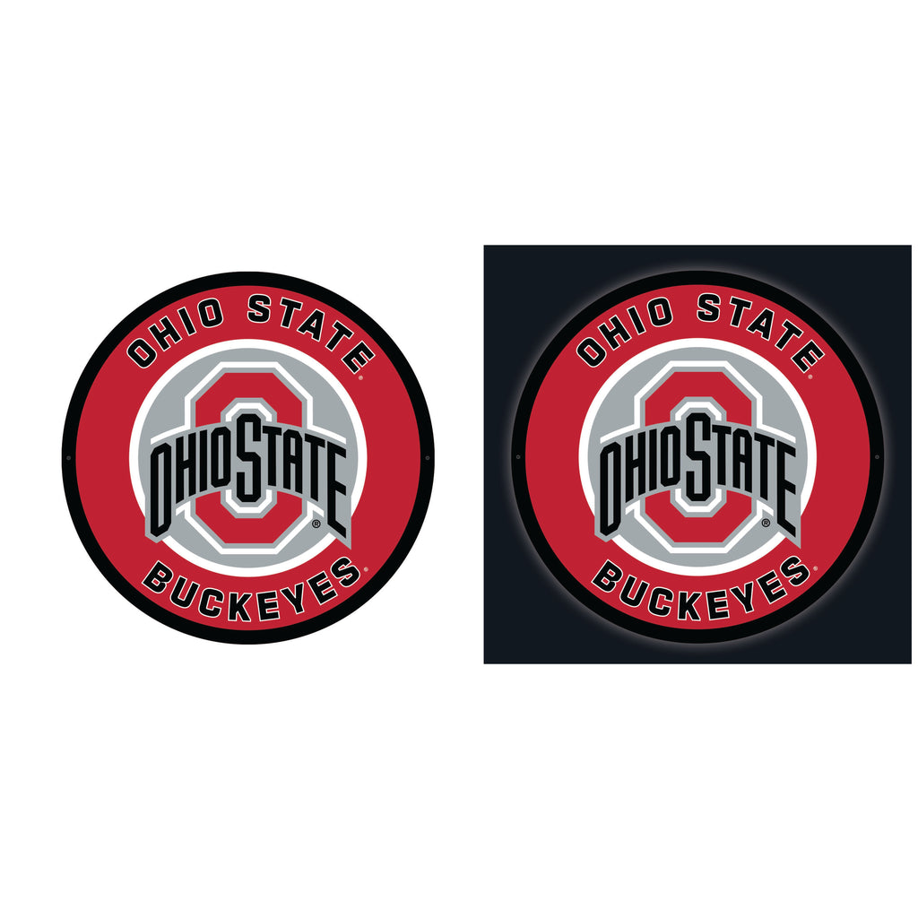 Illuminate your space with the Ohio State University College Large Round Edgelite LED Decor, featuring the iconic Buckeyes logo in vibrant colors.