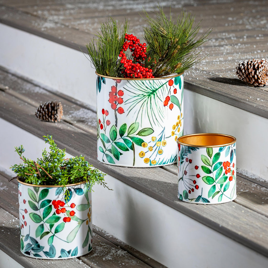 VivaStyle Planter, Metal Printed Planters, Festive Foliage, 10"H, Set of 3