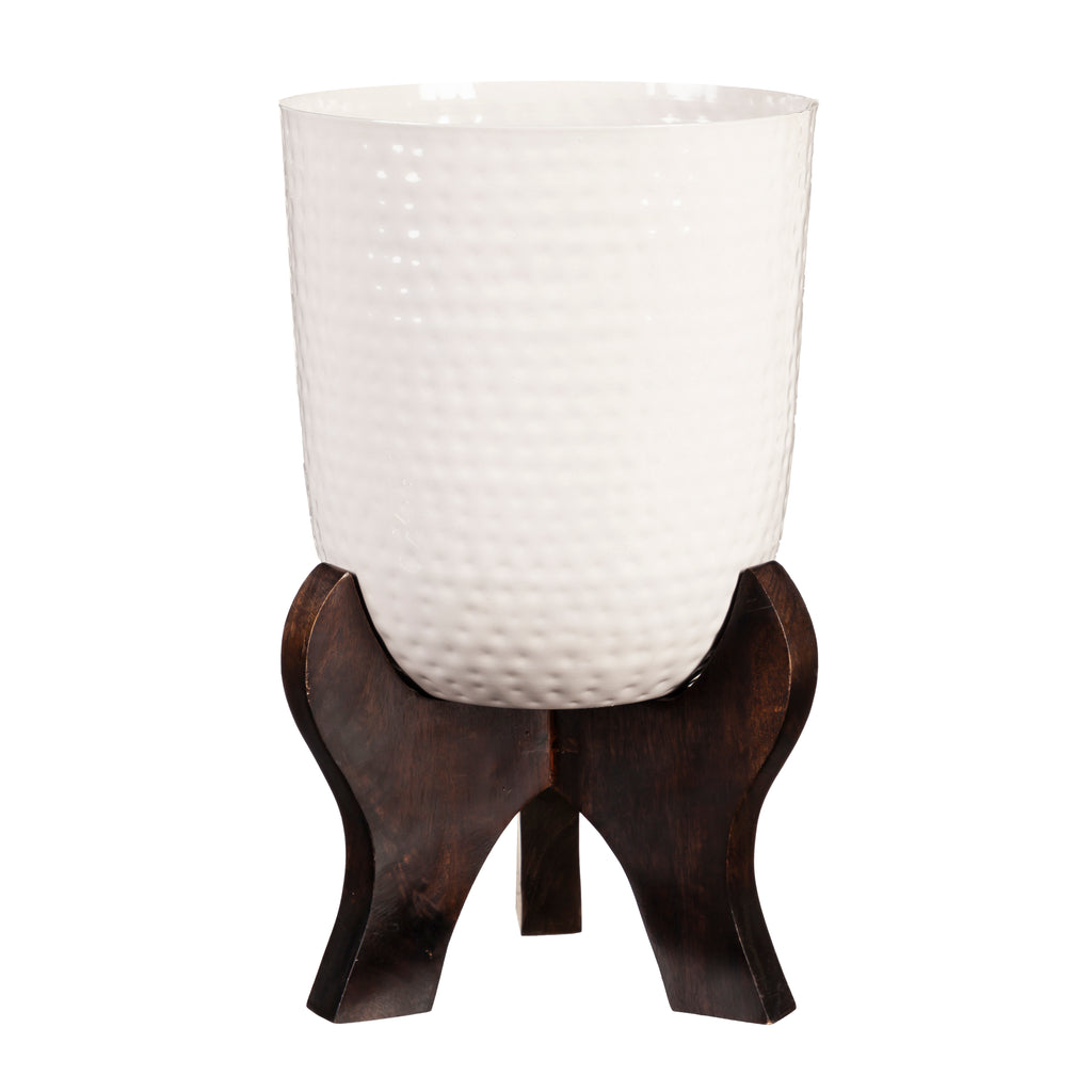 Made of metal with wooden legs, these planters will give flowers, herbs, or ferns, a more distinguished look in any decorative space. 9x9x10"