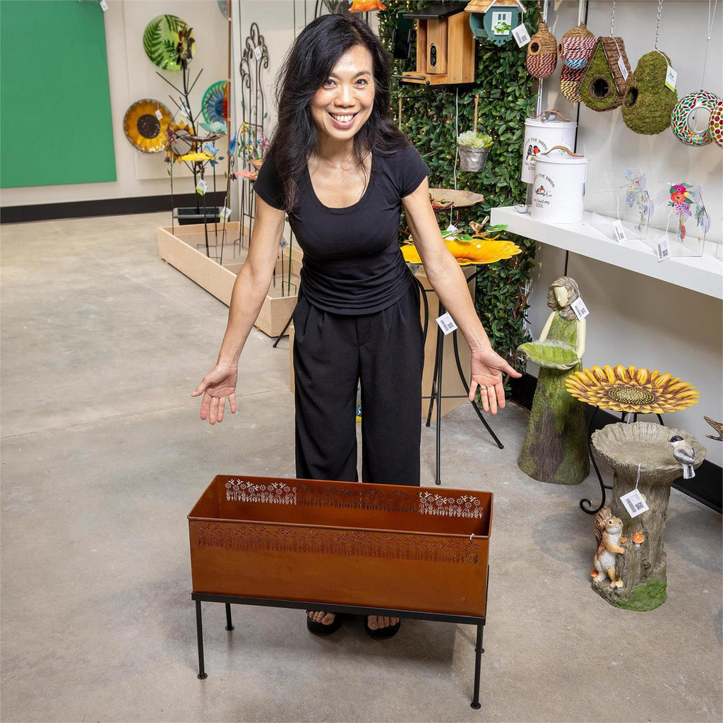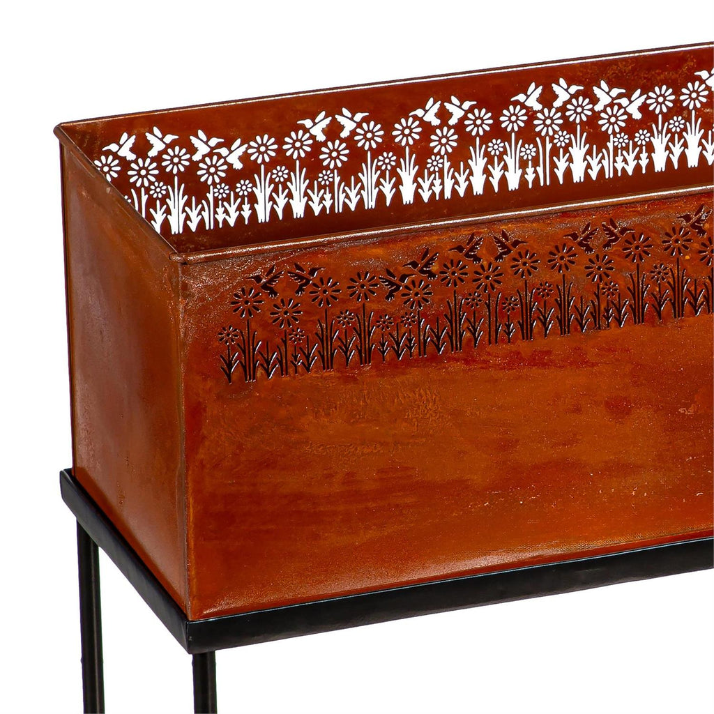 Rectangular Metal Planter with Laser Cut Wildflowers and Hummingbirds
