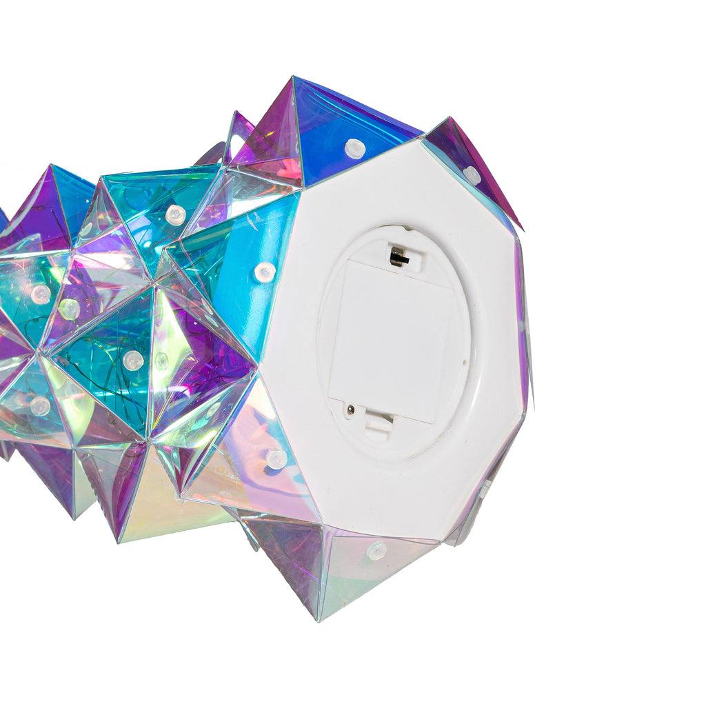 - Crafted from durable plastic with a captivating iridescent finish.
