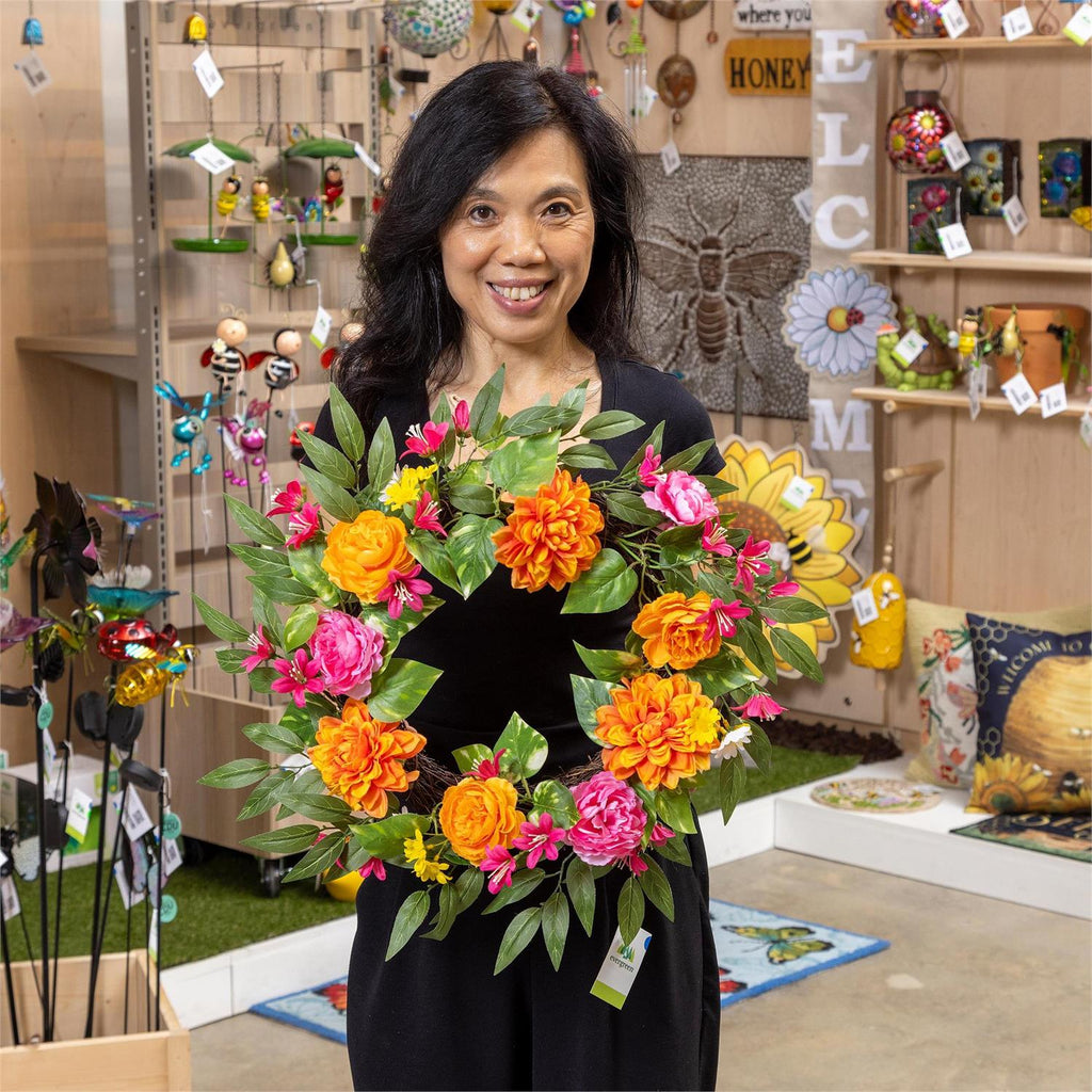 Bring a burst of vibrant color to your home with the Summer Brights Wreath. Measuring 20 inches in diameter, this wreath showcases a delightful arrangement of lush greenery and bold, colorful blooms. Perfect for adding a splash of summer to your front door, living room, or patio, this wreath is crafted to maintain its beauty throughout the season. The durable construction ensures it will stay fresh and inviting, making it a cheerful addition to any space. Celebrate the warmth and joy of summer with this eye-catching decorative piece.