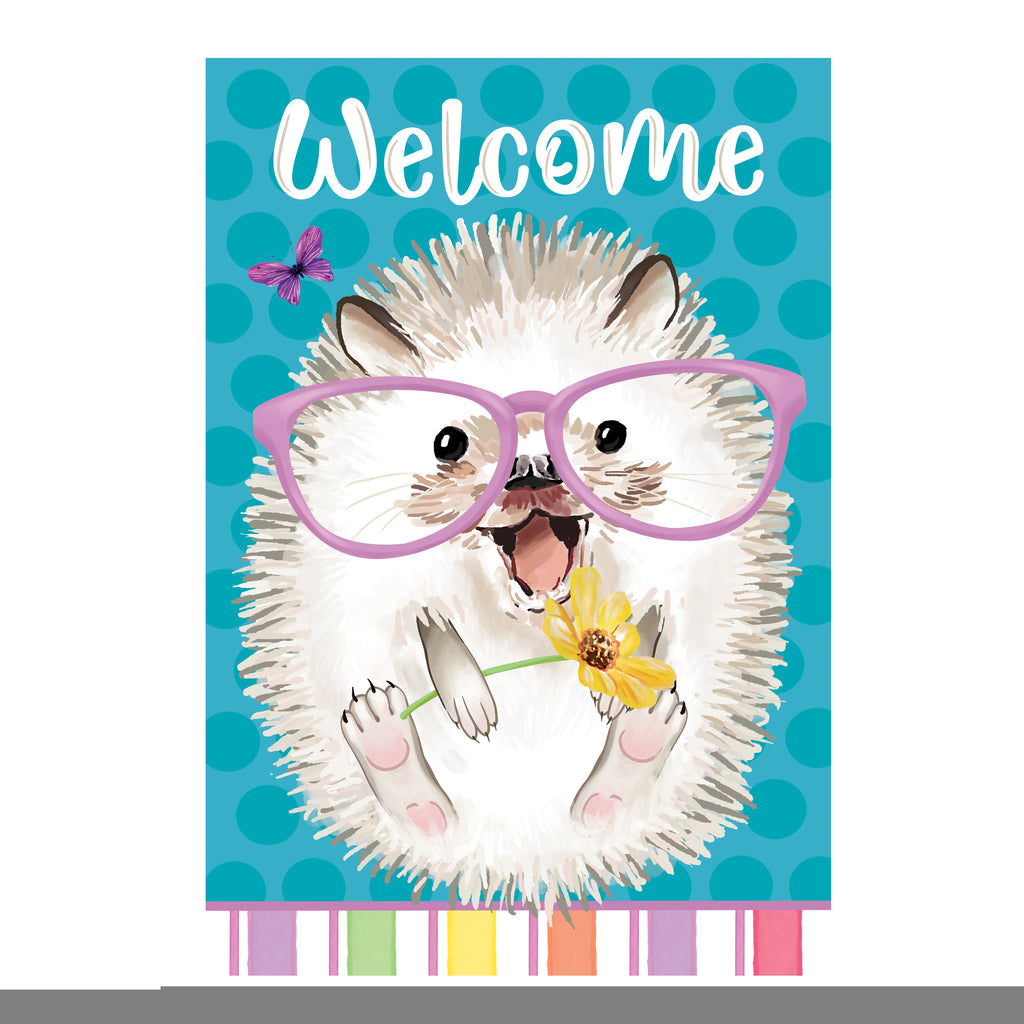 Welcome spring with Hailey The Happy Hedgehog Applique Garden Flag, featuring a cheerful hedgehog design with vibrant colors and playful details.