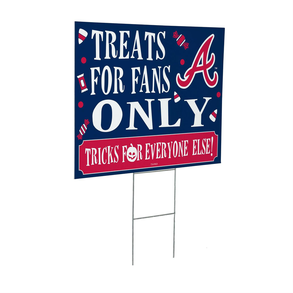 Celebrate Halloween and show your team spirit with the Atlanta Braves Yard Sign. Perfect for fans who want to add a festive touch to their garden, this sign features a playful message that distinguishes fans from the rest. Made from durable materials, it easily withstands the outdoor elements while retaining its vibrant colors. Measuring 24 inches in length and 18 inches in width, it’s the perfect size to catch the eye of visitors and passersby. Whether for Halloween or the entire baseball season, this yard sign is a must-have for loyal Braves supporters.