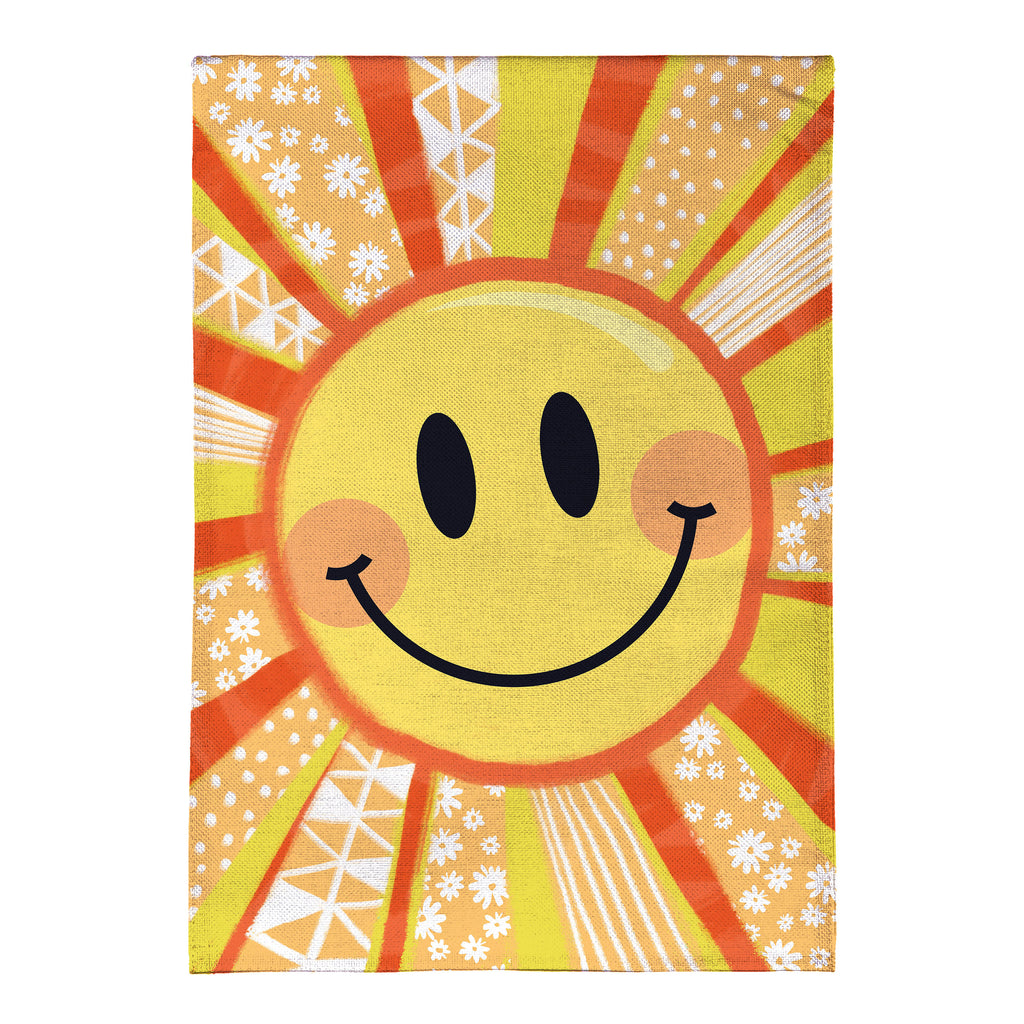 Brighten your outdoor space with the Sunny Smiles Burlap Garden Flag, featuring a cheerful sun design perfect for spring decor.