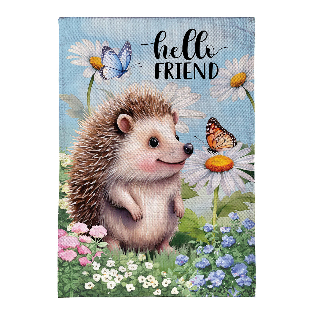 Welcome the spring season with this charming Hedgehog & Daisies Burlap Garden Flag. Featuring a delightful hedgehog amidst vibrant daisies and butterflies, this flag adds a whimsical touch to any outdoor space.