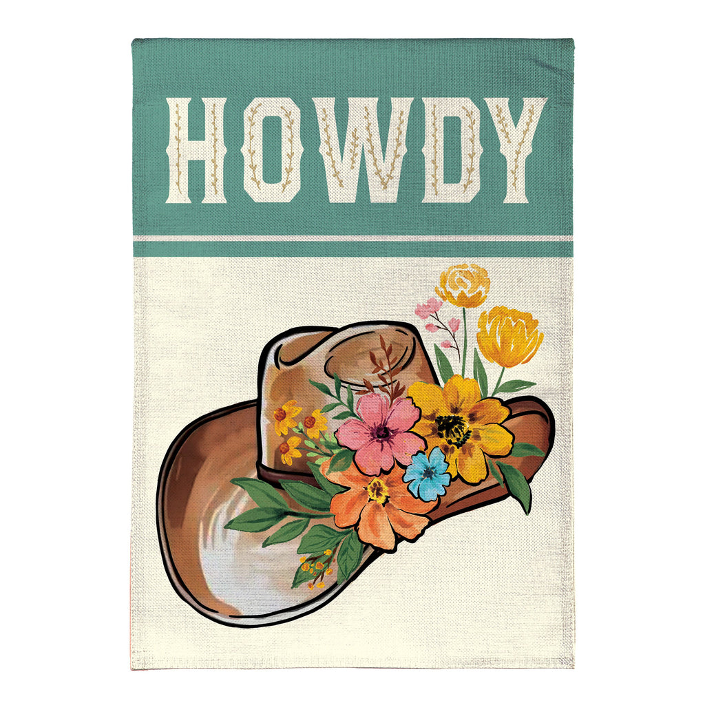 Howdy Floral Cowboy Hat Burlap Garden Flag