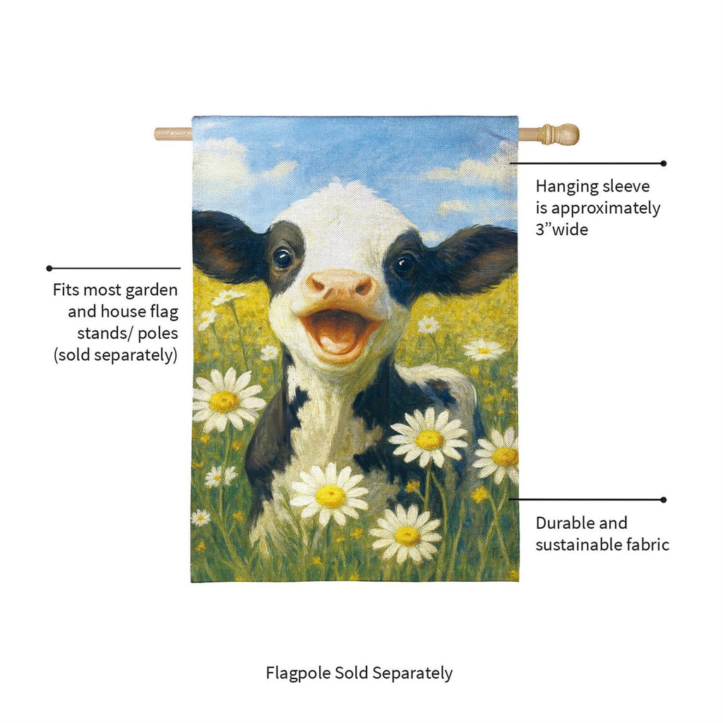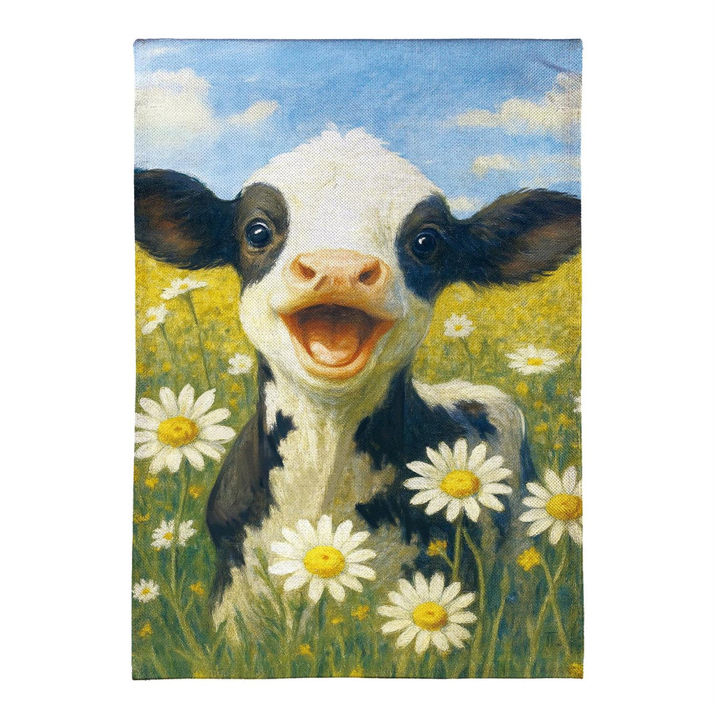 Bring a touch of whimsy and charm to your home with the Caleb The Happy Calf Burlap House Flag. Featuring a delightful image of a joyful calf frolicking among daisies, this flag adds a cheerful vibe to any garden or porch. Crafted from durable burlap, it is designed to withstand the elements, making it perfect for outdoor display. Its vivid colors and playful design make it an inviting addition to your seasonal décor. Measuring 44 inches by 28 inches, this flag is an ideal size to make a statement without overwhelming your space.
