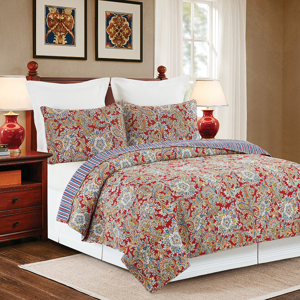 Transform your bedroom with the Rhapsody Paisley F/Q Quilt Set. This elegant quilt features intricate paisley designs that add a touch of sophistication while providing warmth and comfort for a restful night's sleep.