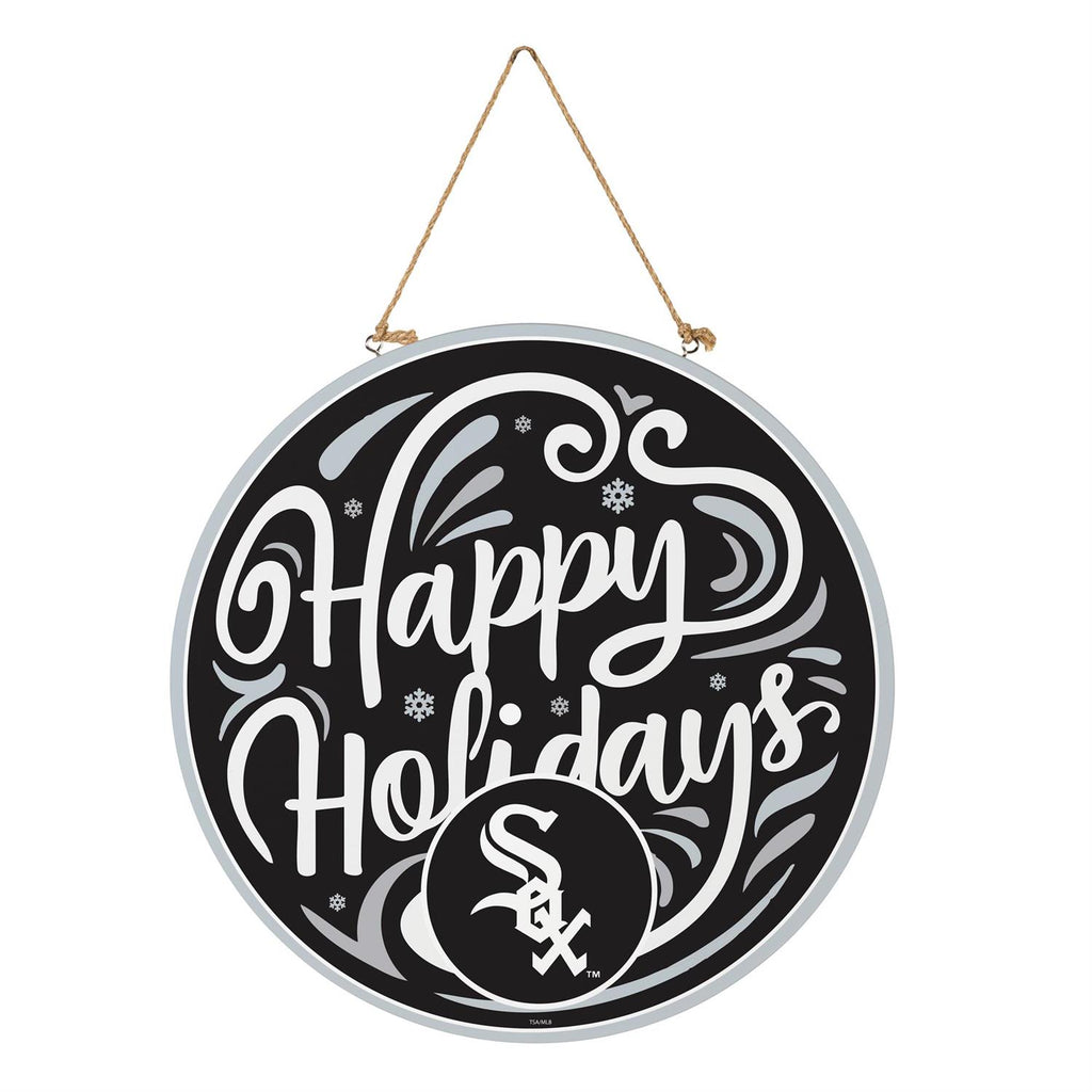 Celebrate the holiday season with this stylish Chicago White Sox Holiday Round Door Décor. Perfect for fans of the team, this 18x18 inch door decoration adds a festive touch to any indoor setting. Crafted from durable materials, it features a chic black and white design with the team's logo, making it a standout piece for your holiday décor. The included hanging rope allows for easy installation on any door, making it an ideal addition to your holiday decorations. Enhance your home’s festive spirit while showing support for your favorite team.