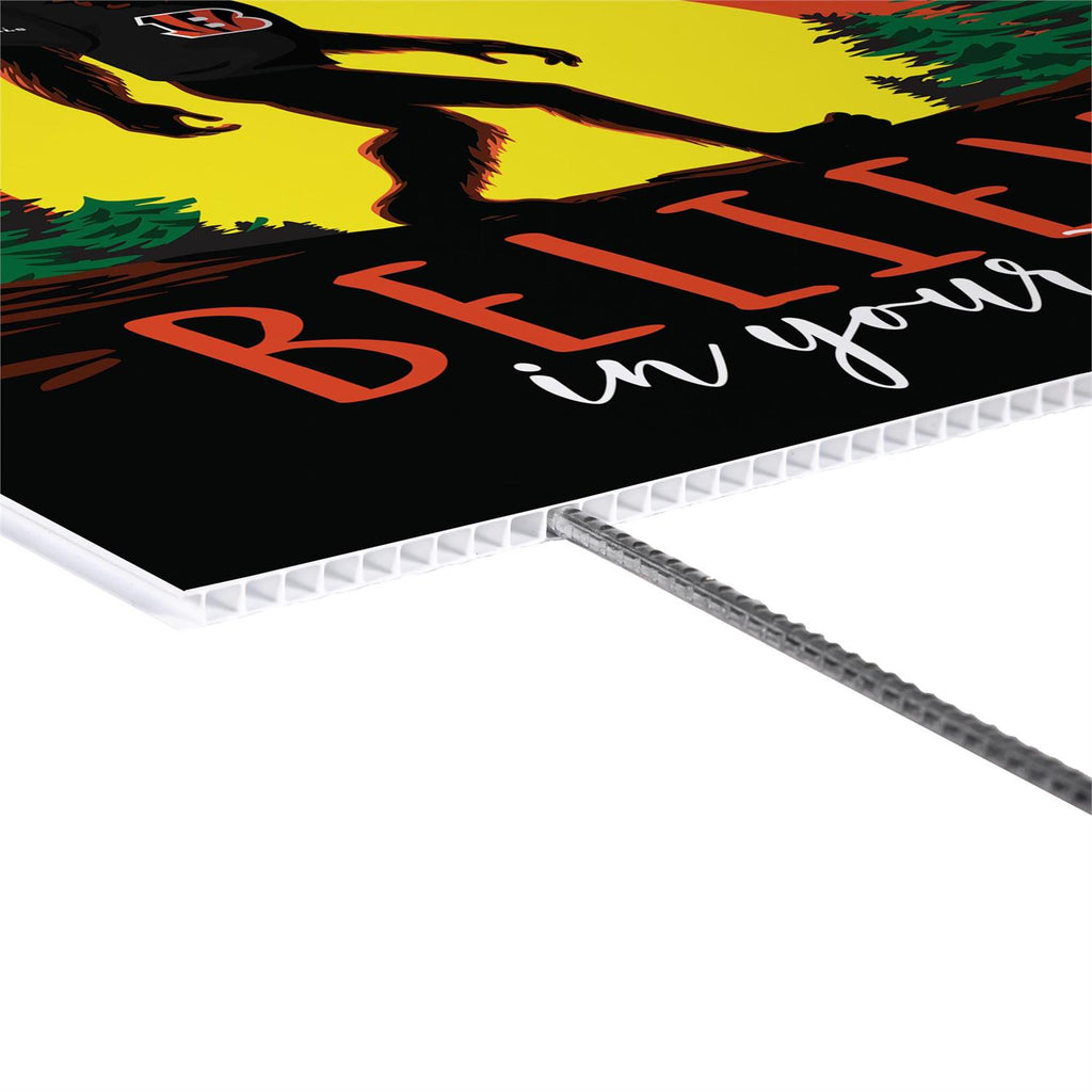 Show your team spirit with the Cincinnati Bengals Yard Sign featuring a fun Bigfoot design. Perfect for any Bengals fan, this garden sign adds a playful touch to your outdoor décor. Measuring 24 inches in length and 18 inches in width, the sign is ideal for displaying in your yard or garden. Crafted with durable materials, it withstands various weather conditions, making it suitable for year-round use. The vibrant colors and unique design make it a standout piece for game day celebrations or everyday team pride.