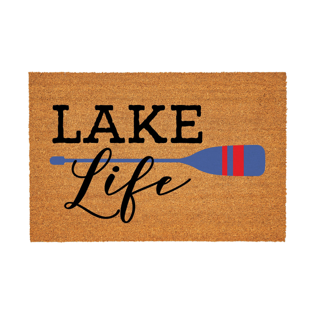 Welcome guests with this charming 'Lake Life' coir mat, perfect for adding a touch of lake-themed decor to your entryway. The durable coir material effectively traps dirt while offering a warm and inviting look.