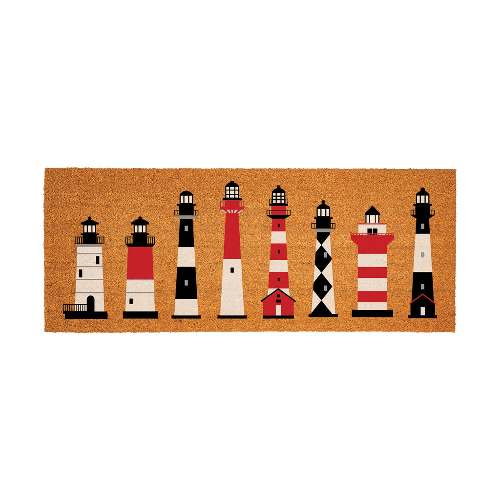 - Vibrant lighthouse design adds a coastal charm to your entryway.