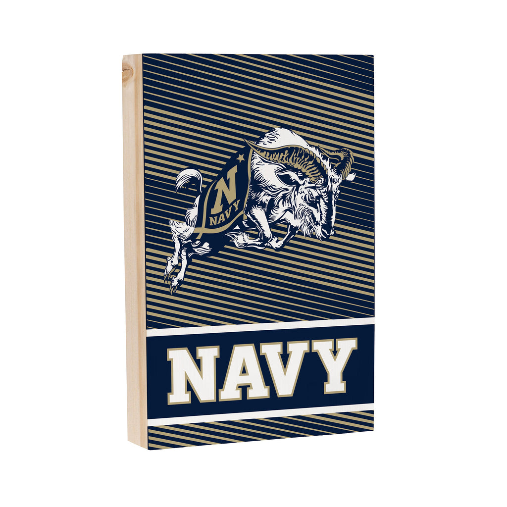 Celebrate your connection to the US Naval Academy with this beautifully crafted tabletop decor, featuring the iconic Navy goat mascot in a bold design.