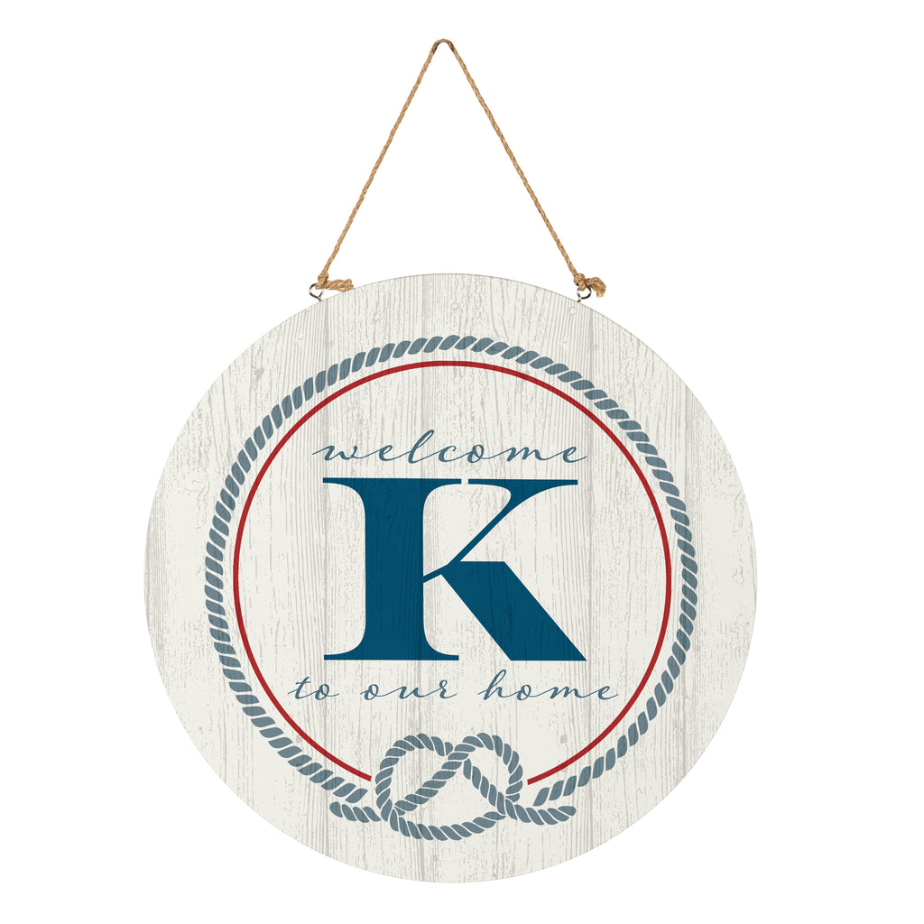 Enhance your entryway with the Coastal Door Decor Monogram, featuring a classic 'K' design on a whitewashed background. Perfect for adding a personalized touch to your home decor.