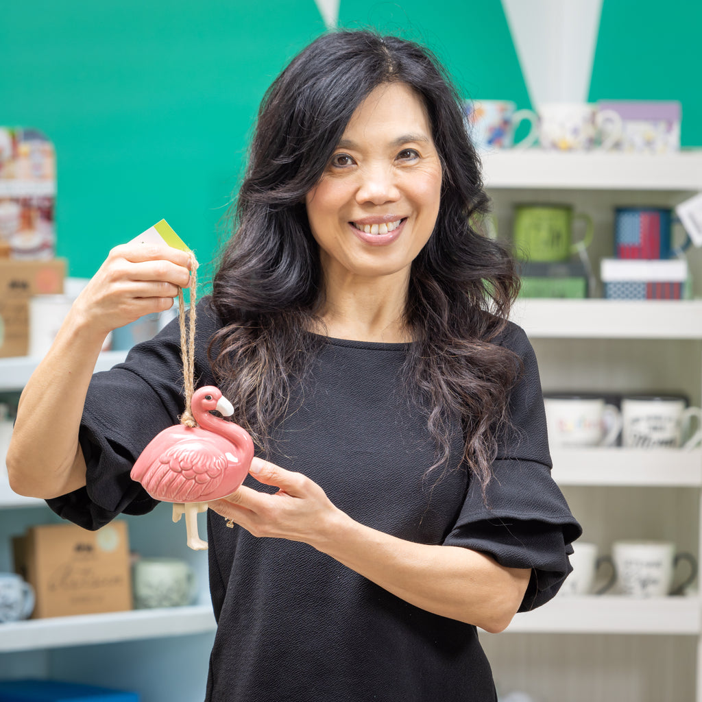 - Features an adorable flamingo design with a palm tree accent for a tropical feel.