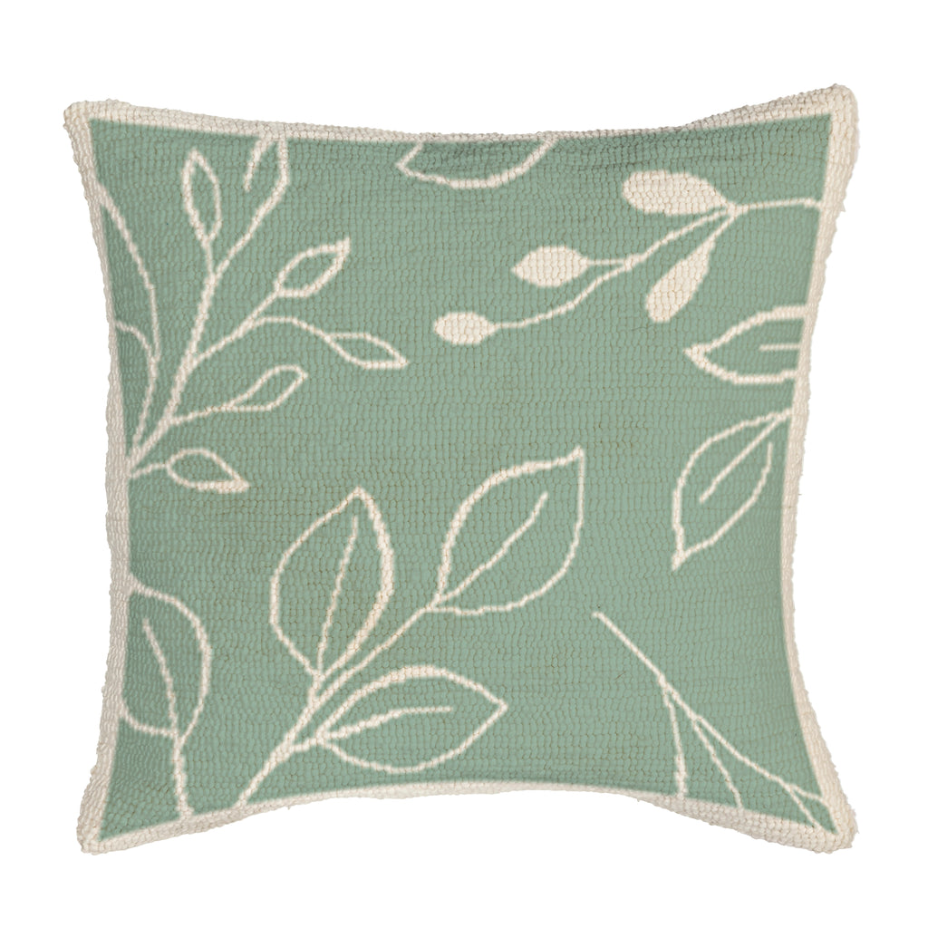 Enhance your indoor or outdoor space with the Verdant Greenery Hooked Pillow, featuring a soothing green color and elegant leaf design.