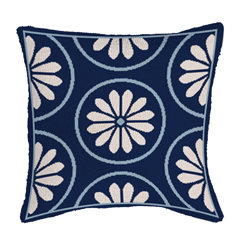 Enhance your outdoor space with this Blue Coastal Indoor/Outdoor Hooked Pillow, featuring a charming floral pattern in blue and white. Designed for summer, this pillow is perfect for patios and garden seating areas.
