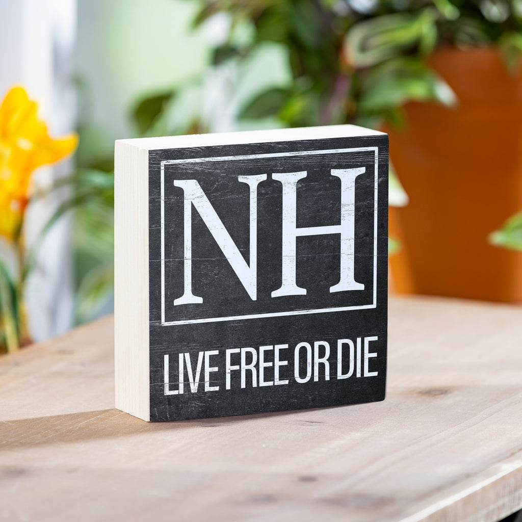 Celebrate the spirit of New Hampshire with this rustic wooden plock featuring the state's motto 'Live Free or Die.' Perfect for adding a touch of state pride to any indoor space.