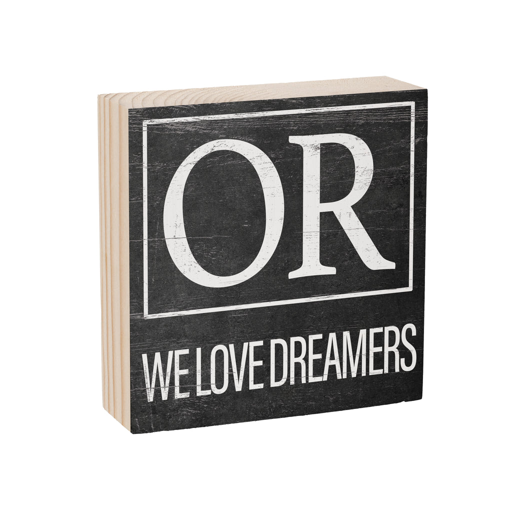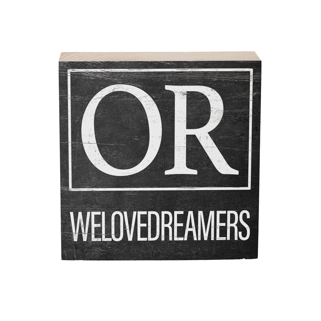 - Features a stylish black and white design with 'OR' and 'We Love Dreamers' text.