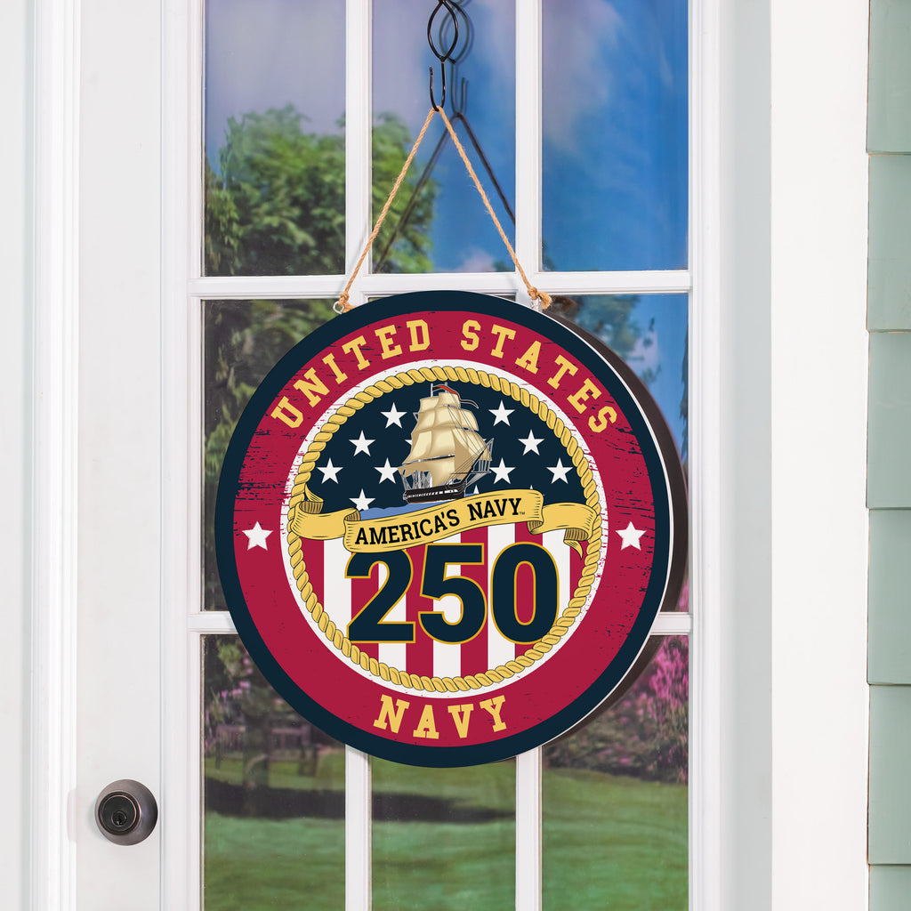US Navy, 250th Anniversary Round Door Decor with Hanging Rope, 18x18