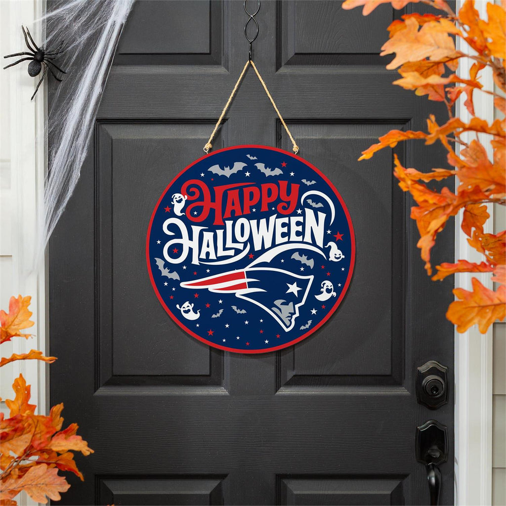Celebrate Halloween and show off your team pride with this New England Patriots Halloween Round Door Décor. Measuring 18 inches in diameter, this vibrant wall décor piece is perfect for adding a festive touch to your home. Made with durable materials, it features a hauntingly fun design complete with iconic team colors and logos. The attached hanging rope makes it easy to display on any door or wall, making it an ideal addition to your seasonal decorations. Whether you're hosting a party or welcoming trick-or-treaters, this décor piece is sure to impress.