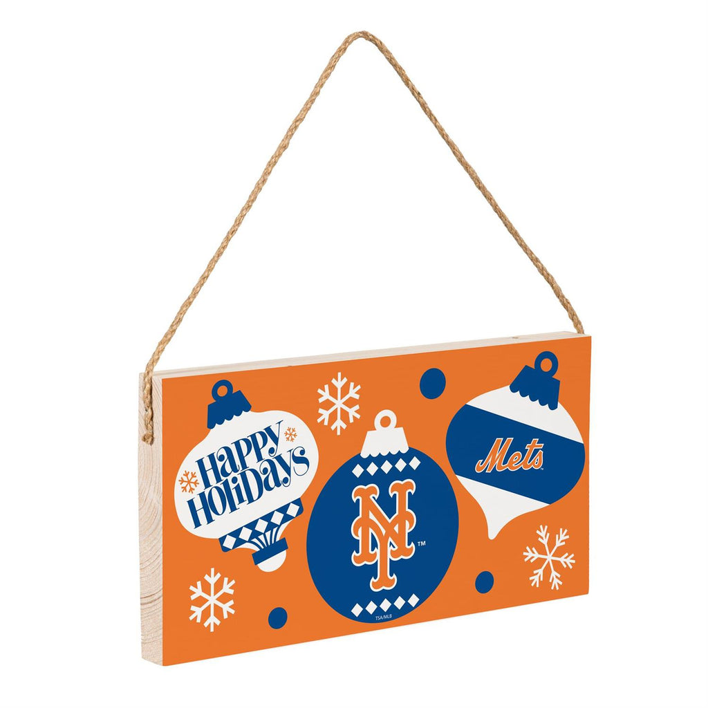 Celebrate the holiday season in true fan style with the New York Mets Holiday Wood Wall Sign. Perfect for any Mets enthusiast, this sign measures 6x11 inches and showcases a festive design with the team's iconic colors and logo. Crafted from durable wood, it features charming holiday ornaments and snowflakes, making it a great addition to your seasonal decor. With an easy-to-hang twine loop, this sign is ready to adorn your home, office, or fan cave, spreading cheer and team spirit throughout the festive season.