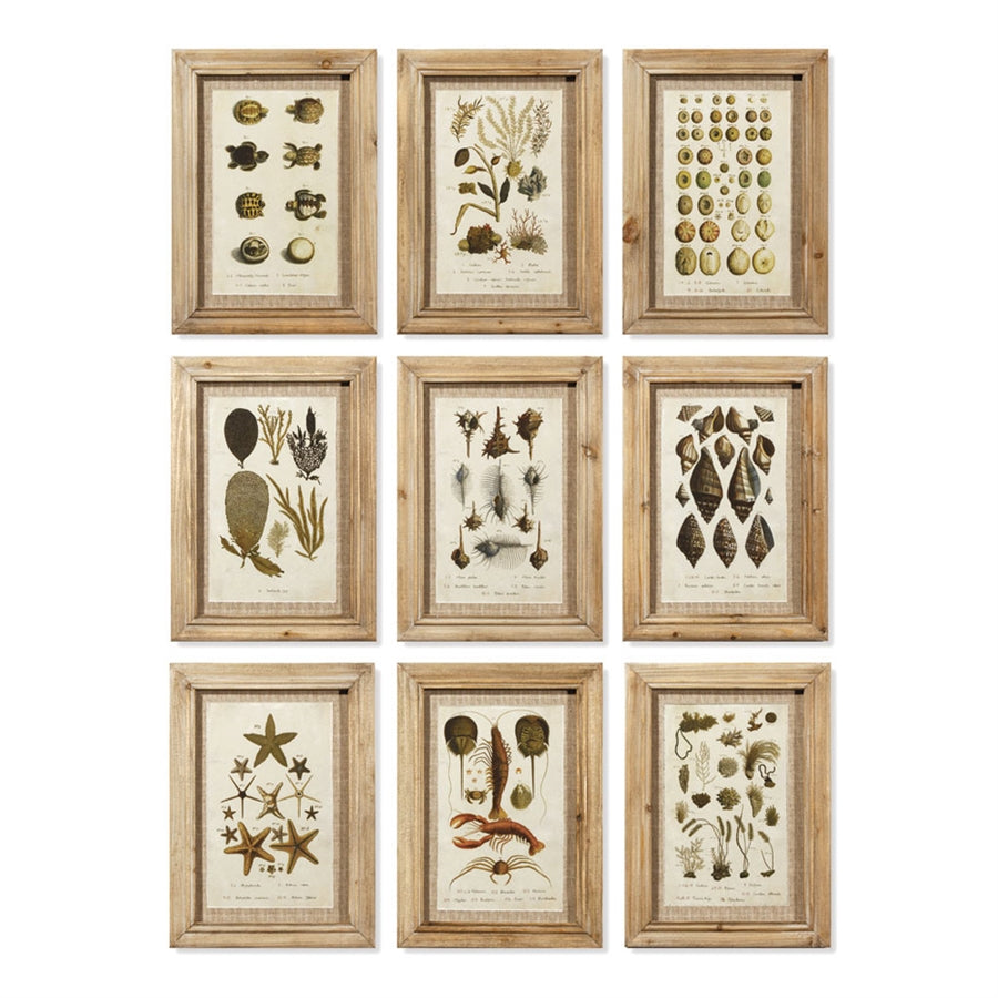 The Framed Antibes Prints, set of nine, are a collection of studies of sealife groupings. The soft tones in the prints are nicely echoed in their neutral matting and frames.