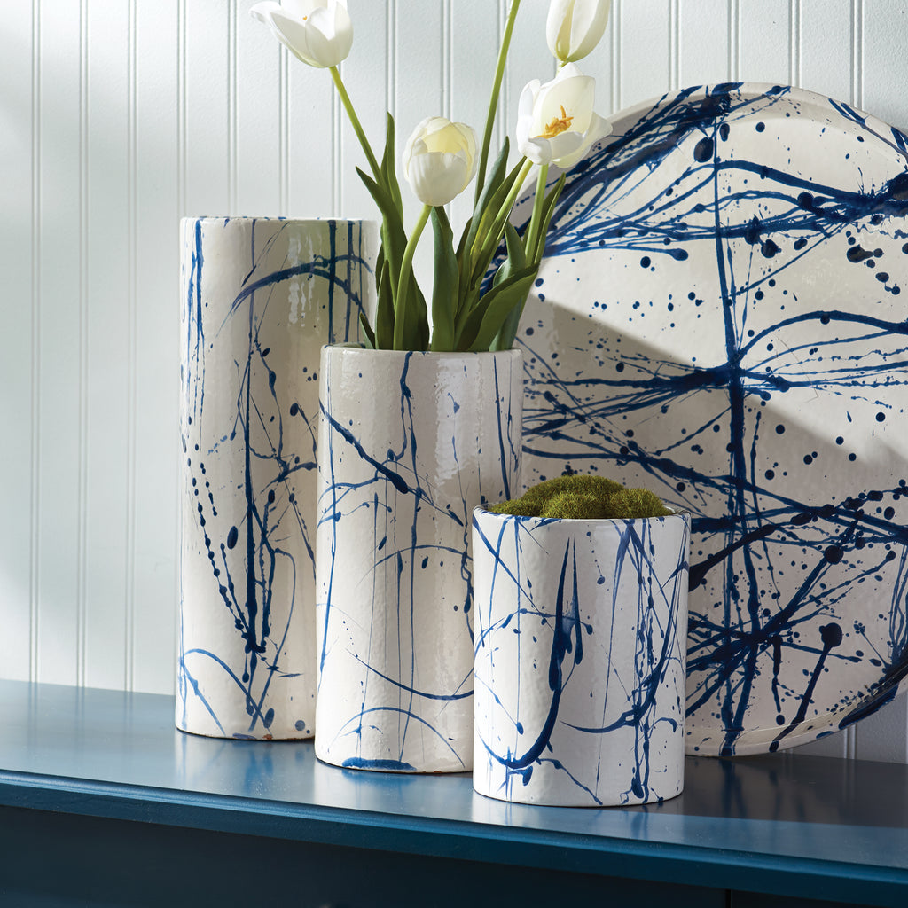 Handcrafted by skilled artisans, each piece is an original and varies in size and color. Dust with dry cloth. Protect fine furniture by lining the interior of the pottery when necessary. Decorative interior use only.