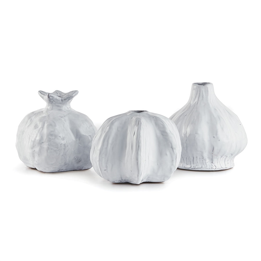 In a clean, white glaze and organic shape, these gourds add visual interest to countertop or table. Perfectly paired with any color palette.