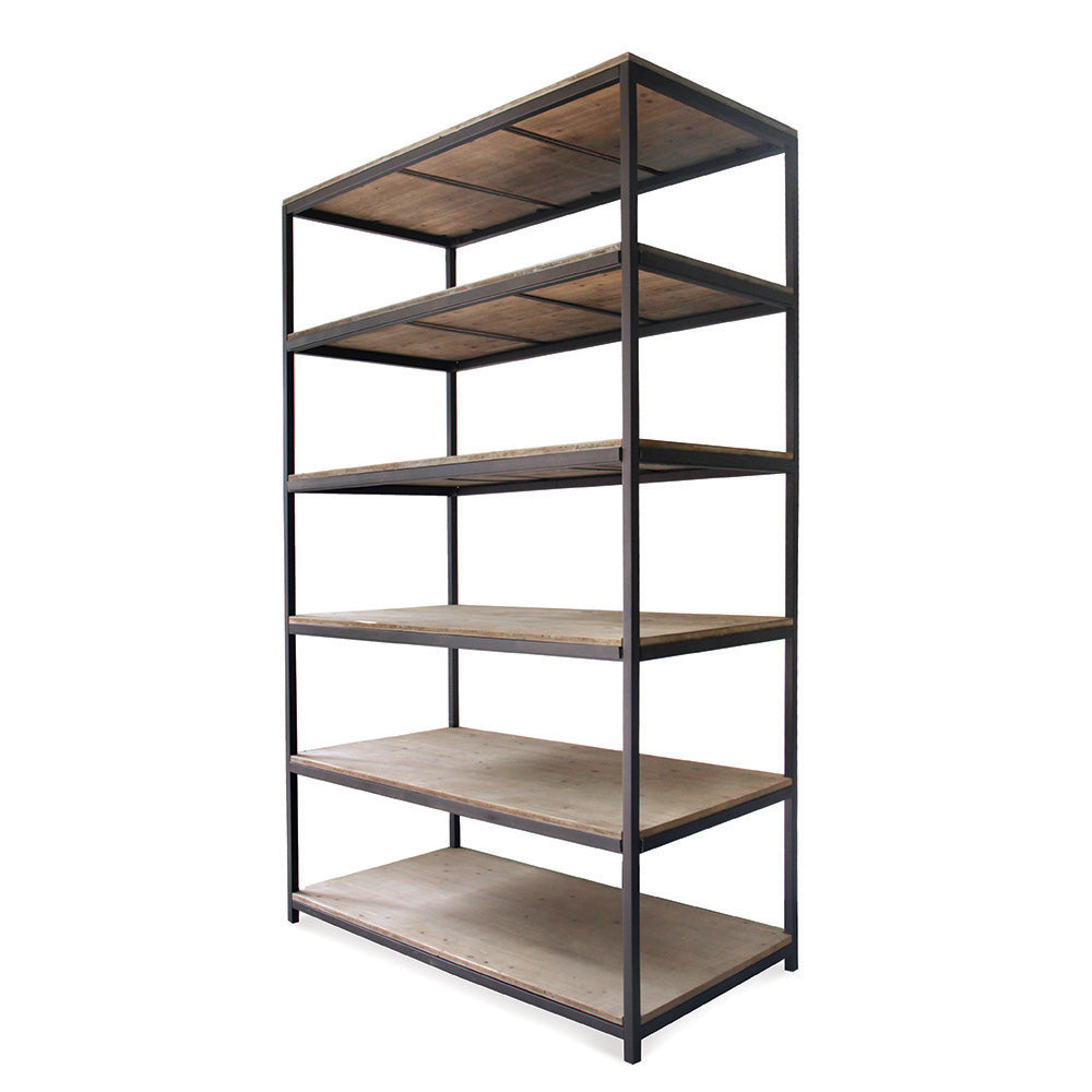 • -Bronze Iron/Natural Whitewash Pine;-Fixed shelves;-Assembly required;-Exceeds FedEx requirements