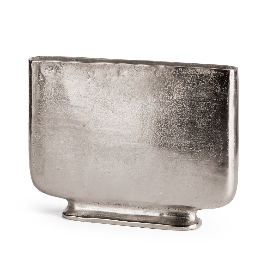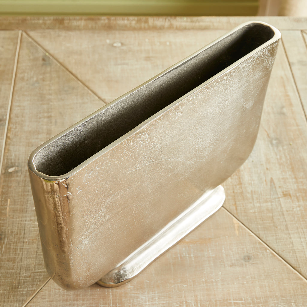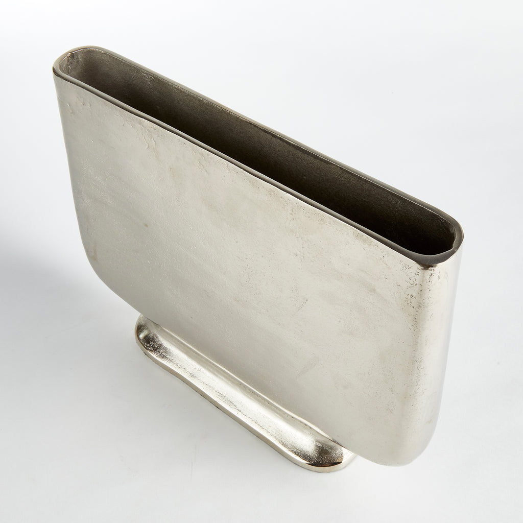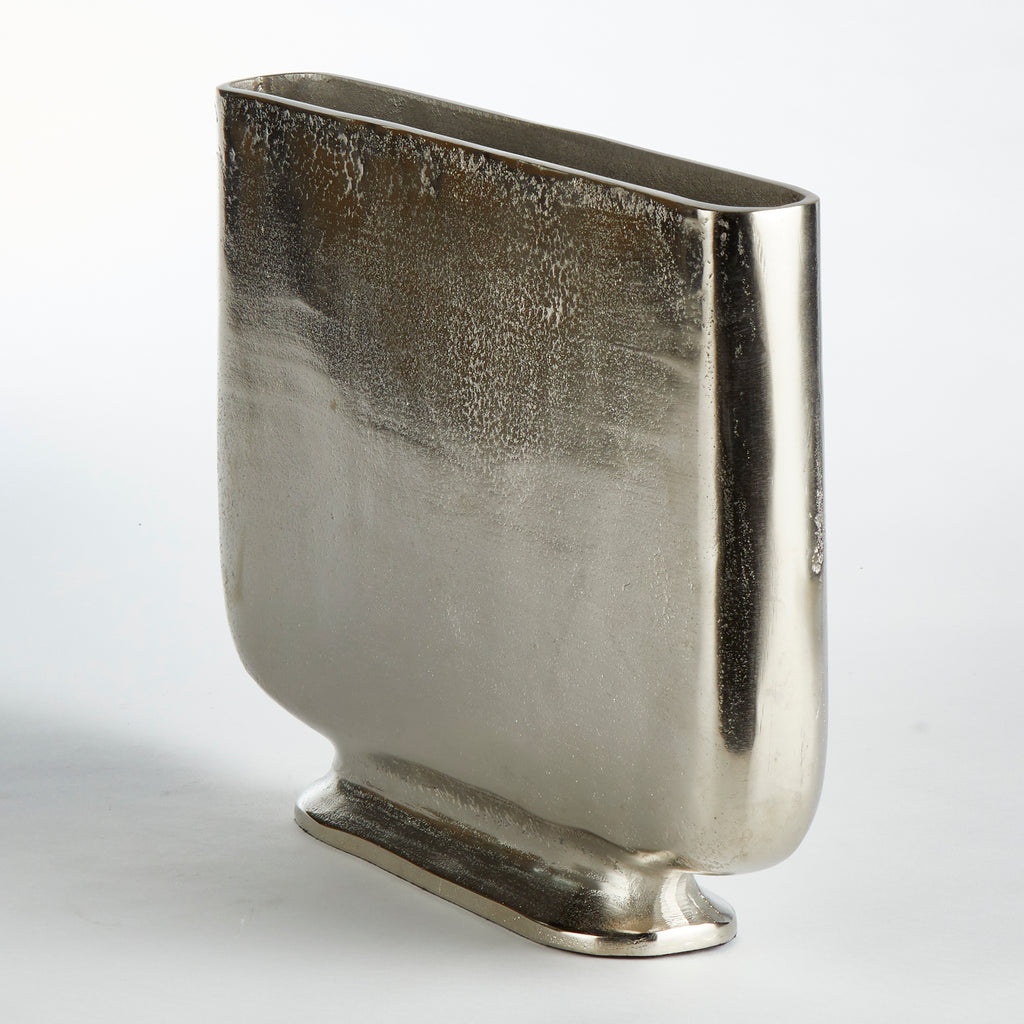 Designed with a shallow profile, this simple vase is perfect for narrow shelving and alcoves. Large in scale, they are ideal for tall stems of any color, and are also just stunning as is.