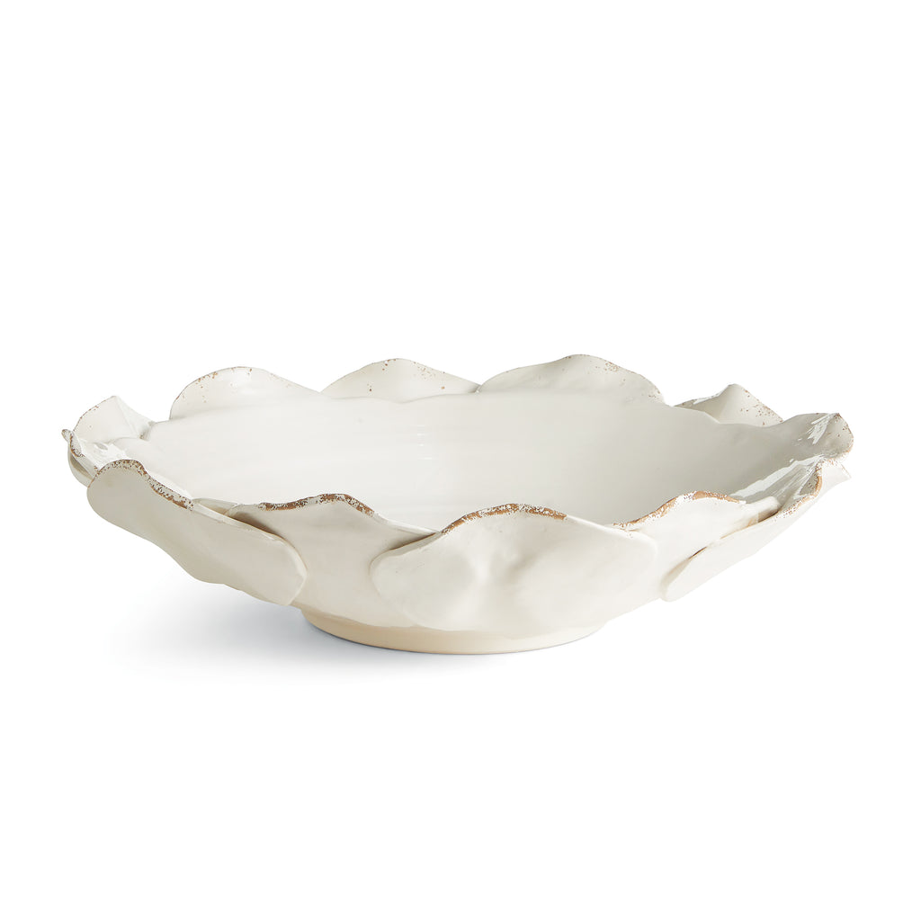 Each and every petal of the Di Rosa Decorative Grande Bowl is handmade, and hand-applied by Italian artisans in Tuscany, Italy. A seamless design in a soft white glaze and delicate antiquing along petal edges. With a classic Italian craftsmanship passed down through generations, each piece is a true original. In grand scale, a dynamic centerpiece for feature table, kitchen island or mantel.