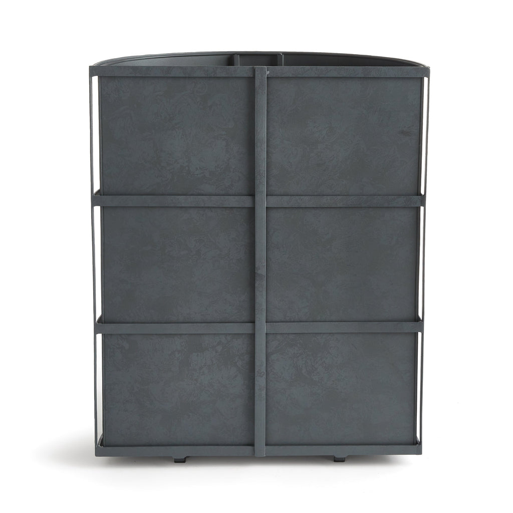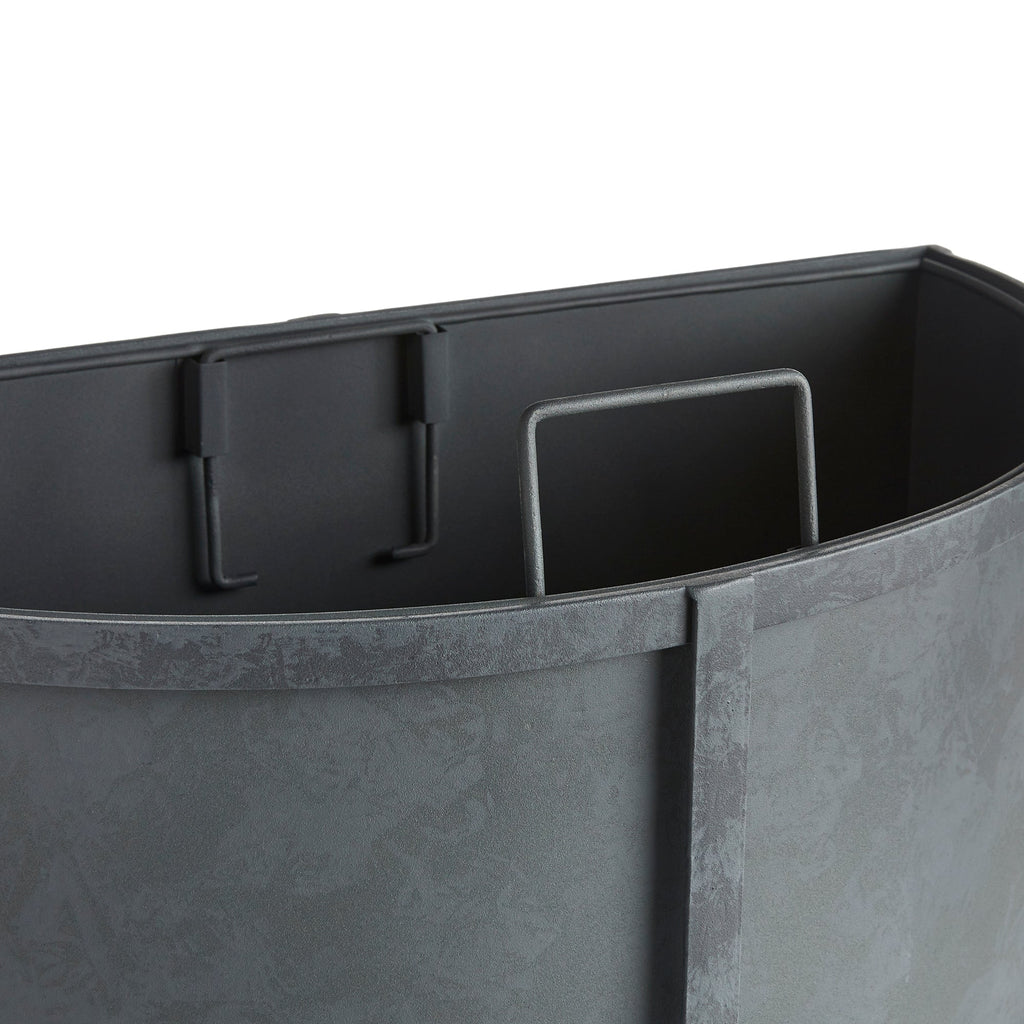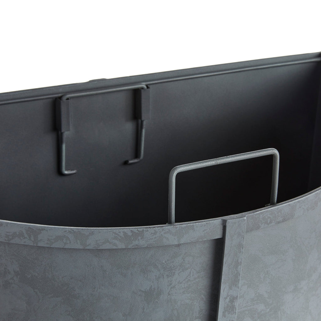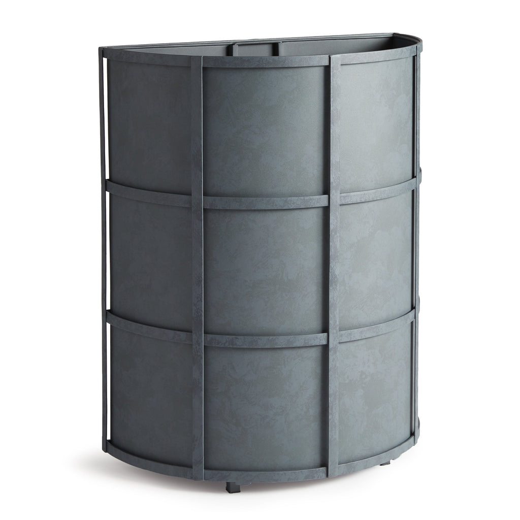 Raised off the ground for proper drainage, this well-scaled demilune planter is the modern interpretation of an antique planter. It is fully powder-coated, and has a removable liner with recessed handles. A statement piece for between windows, garage doors, and on the patio.