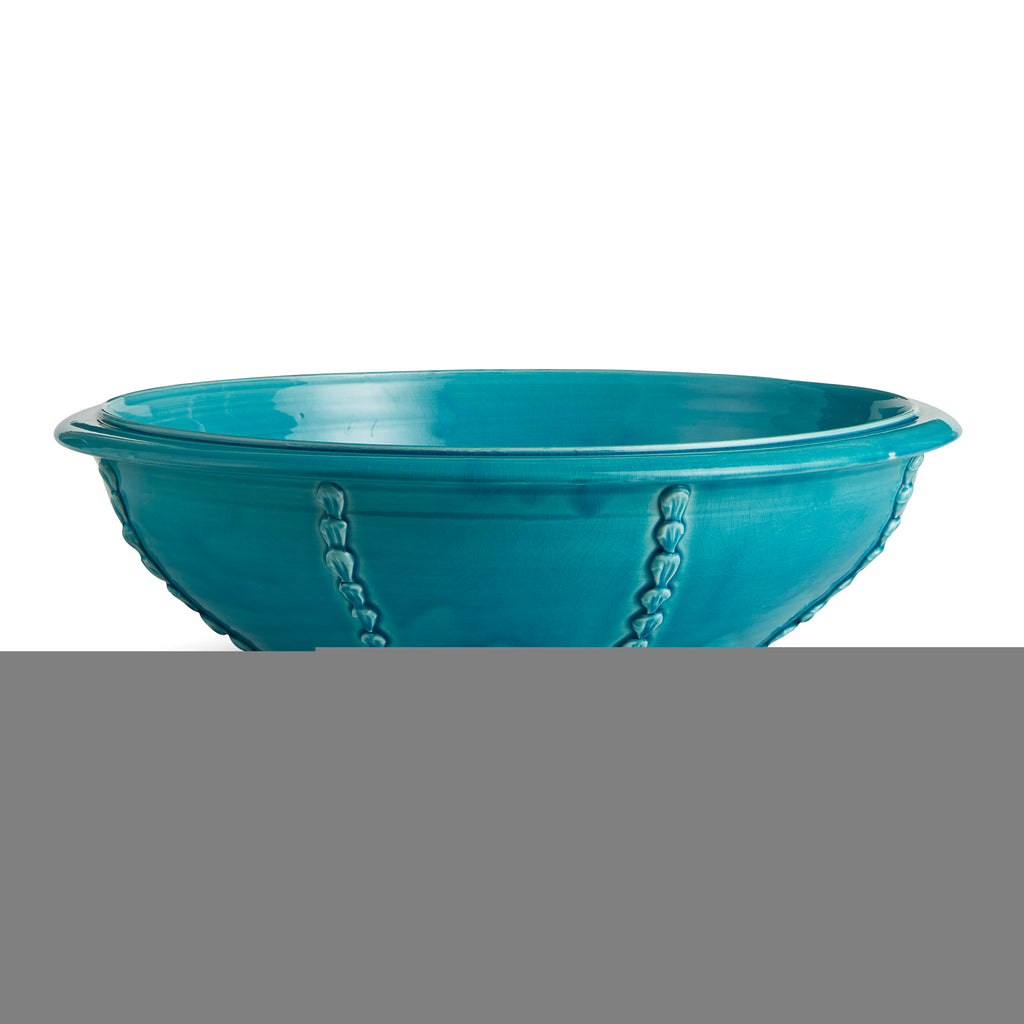 Handcrafted by skilled artisans, each piece is an original and varies in size and color. Dust with dry cloth. Protect fine furniture by lining the interior of the pottery when necessary. Decorative interior use only.