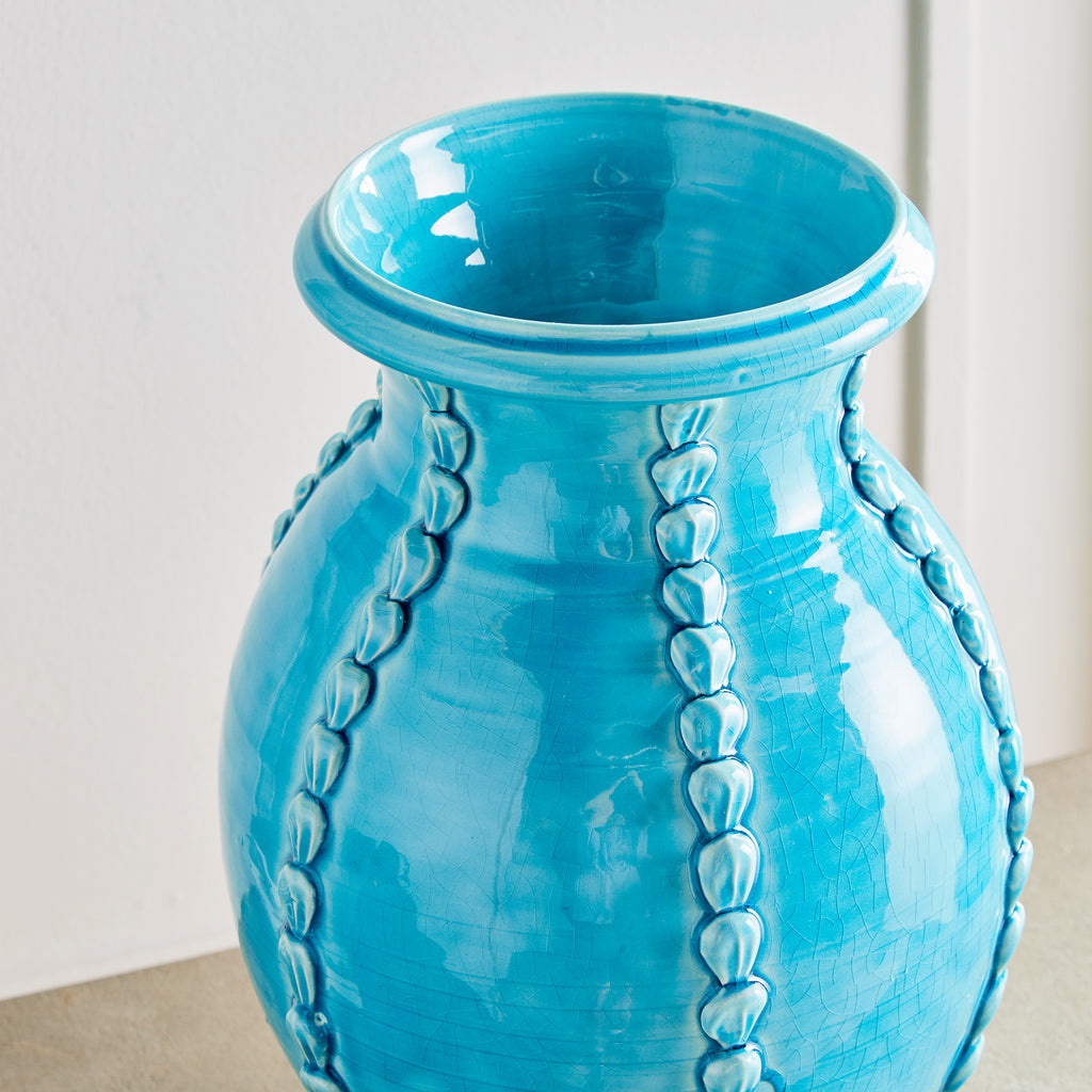 The Positano Vase is handmade by Italian artisans in Tuscany, Italy. With a classic Italian craftsmanship passed down through generations, each piece is a true original. Each shell form is hand-applied, in a linear pattern creating a traditional classic look.