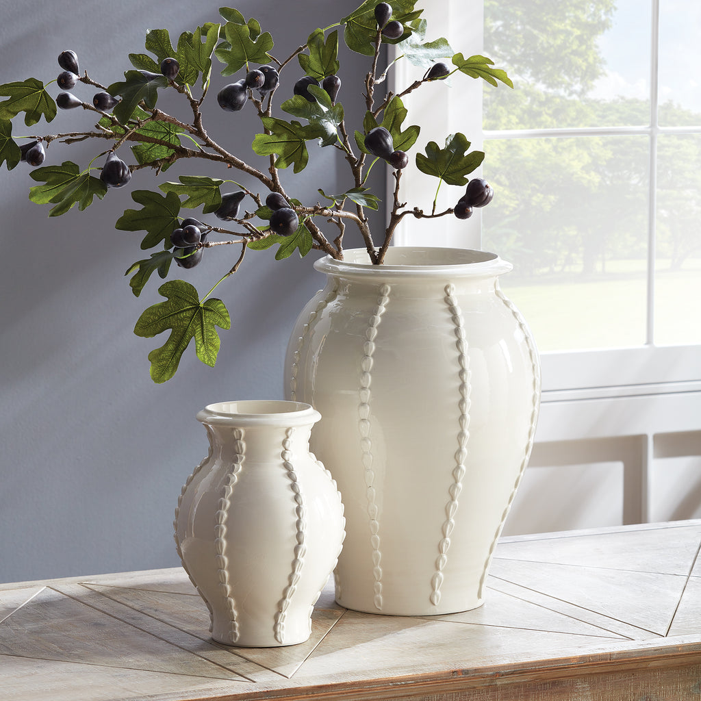 The Positano Vase is handmade by Italian artisans in Tuscany, Italy. With a classic Italian craftsmanship passed down through generations, each piece is a true original. Each shell form is hand-applied, in a linear pattern creating a traditional classic look.