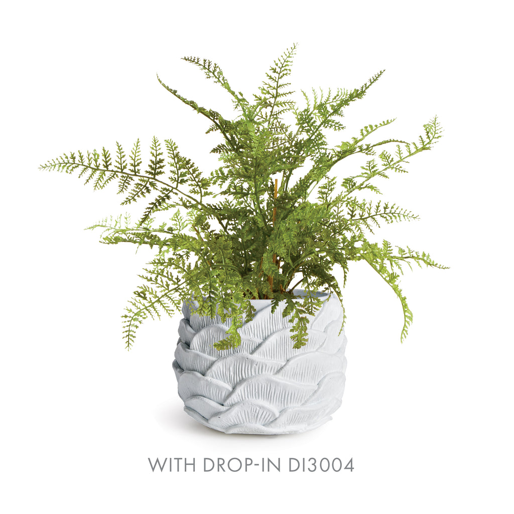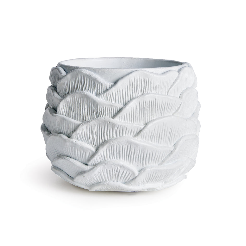 The oversized, layered petals that adorn this pot give it an artisan feel. The bright white glaze and hand finished touches make it a great value. Fill it with lush greens or a prized orchid and enjoy!