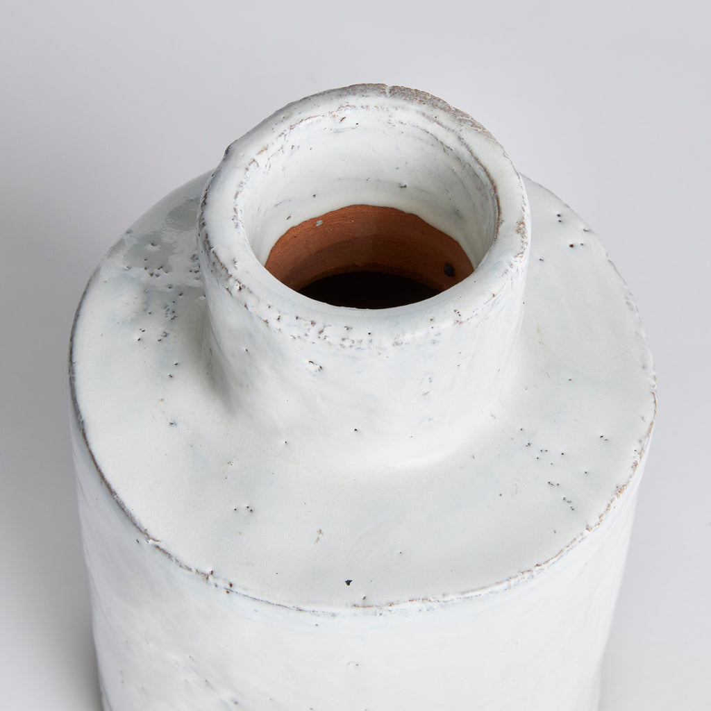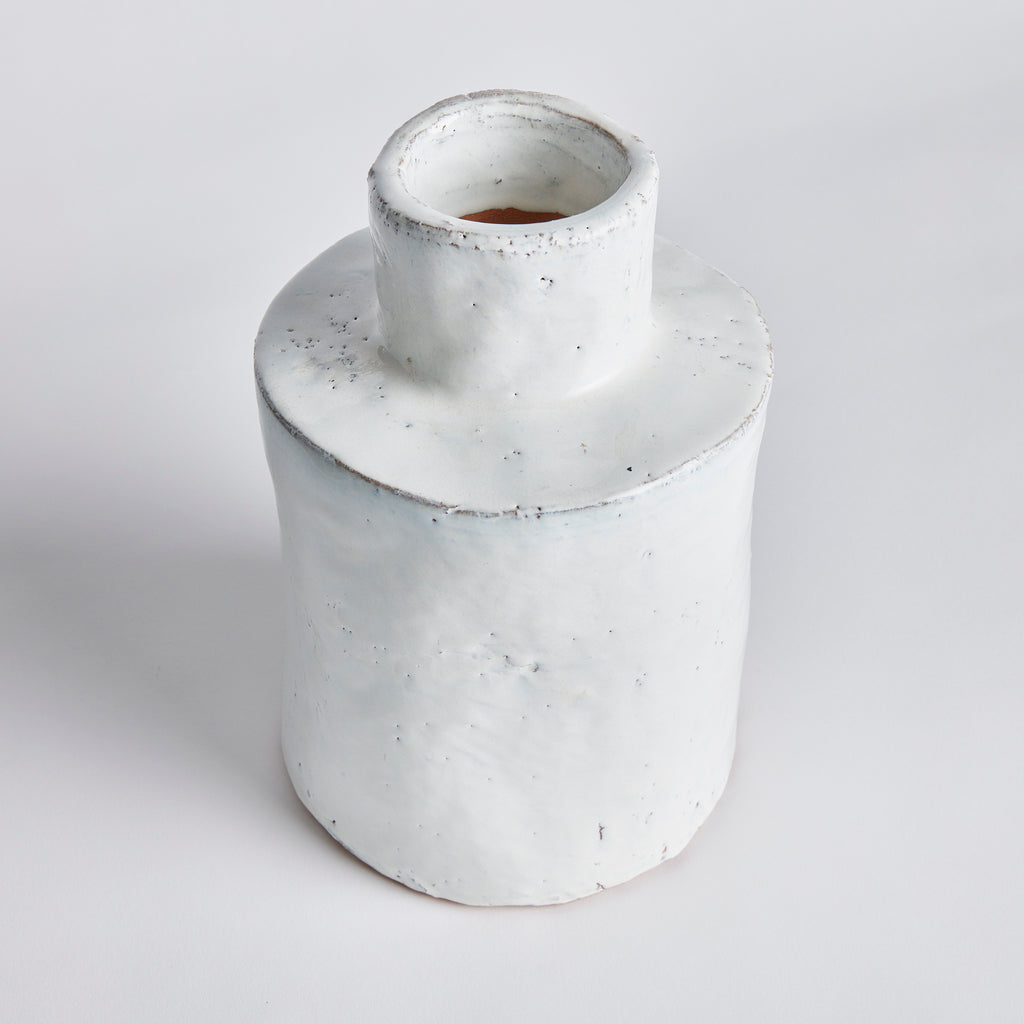 With a pitted texture and an uneven glaze, this vase is full of hand-finished details. Each and every piece a work of art. A contemporary artisan-inspired stoneware accent for mantel, console or kitchen island.